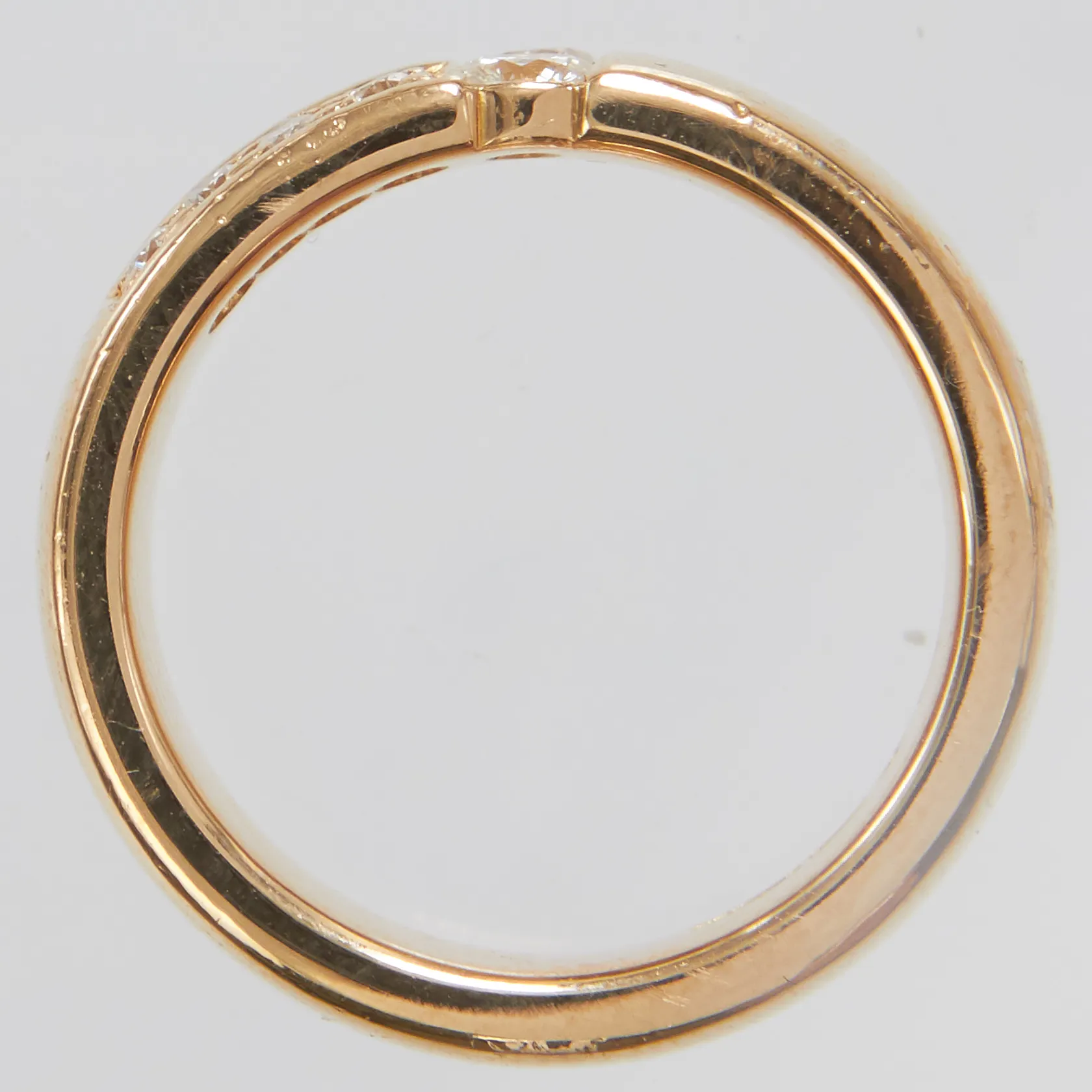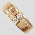 Ring, briljantslipade diamanter 2 x ca.0,10ct samt 8 x ca.0,02ct, Ø16, bredd: 6,5mm, nypolerad, en skadad sten, 18K Vikt: 10,7 g.