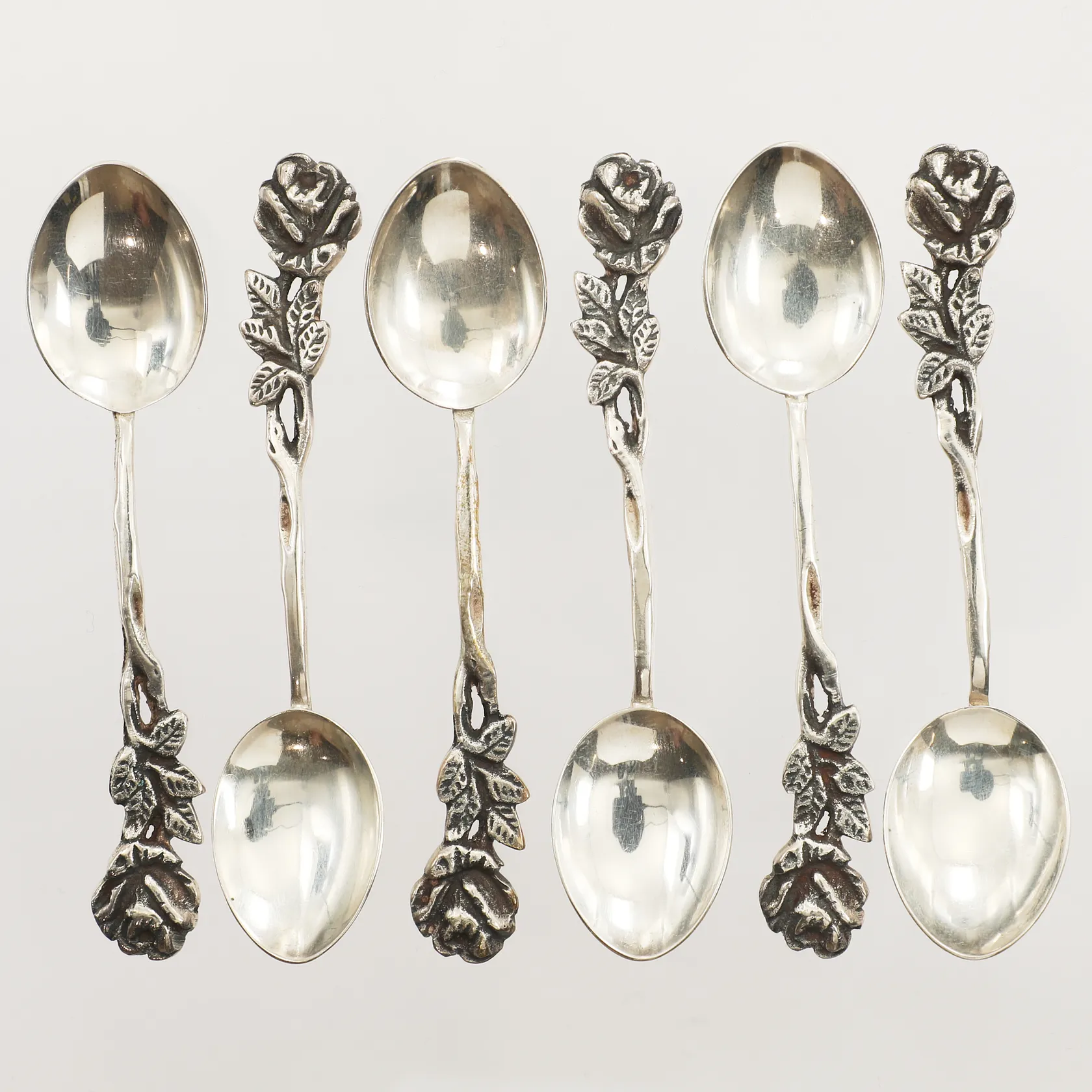 Sex moccaskedar med floral dekor, längd 9cm, silver 830/1000 Vikt: 51,2 g.