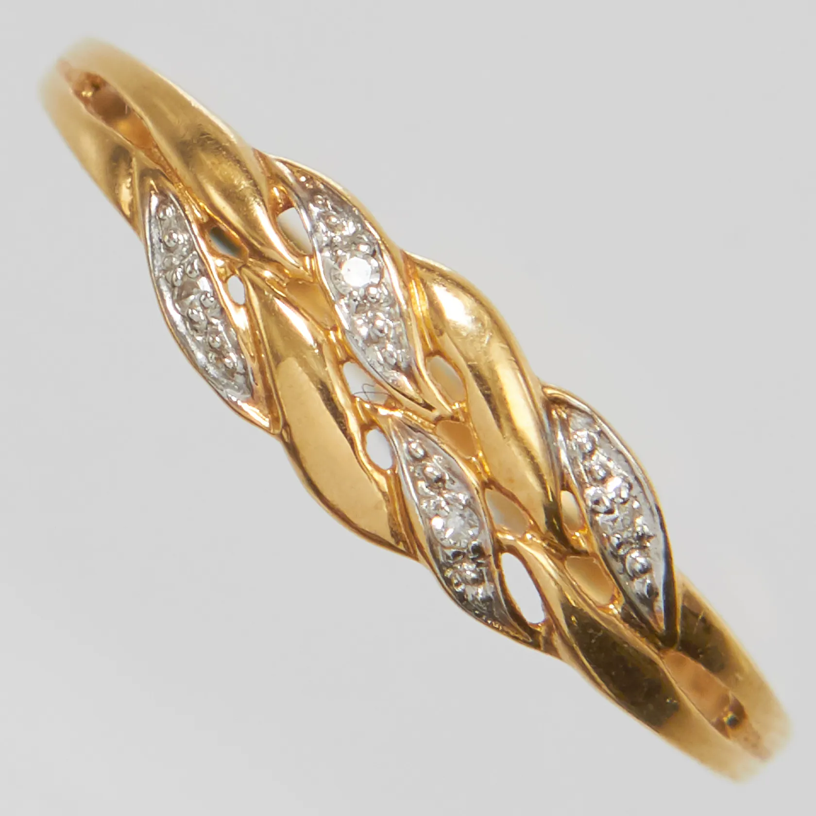Ring med diamanter 4 x ca.0,0025ct, 8/8-slipade, Ø19, bredd: 1,2-5,2mm, GHA, 18K Vikt: 1,1 g.