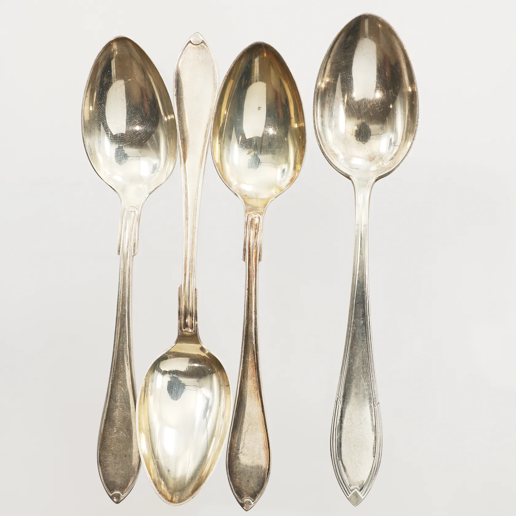 Fyra skedar, gravyr, 830/1000 silver Vikt: 57,4 g.