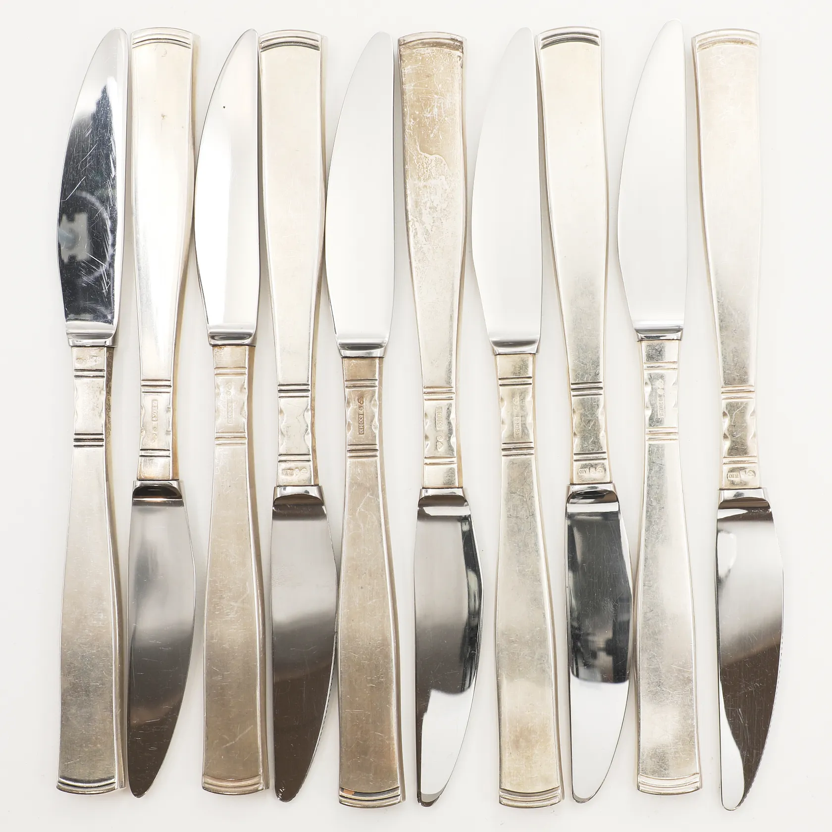 Tio knivar Rosenholm, längd ca 20cm, blad i rostfritt stål, 830/1000 silver, bruttovikt: 663,8g. Vikt: 634,9 g.