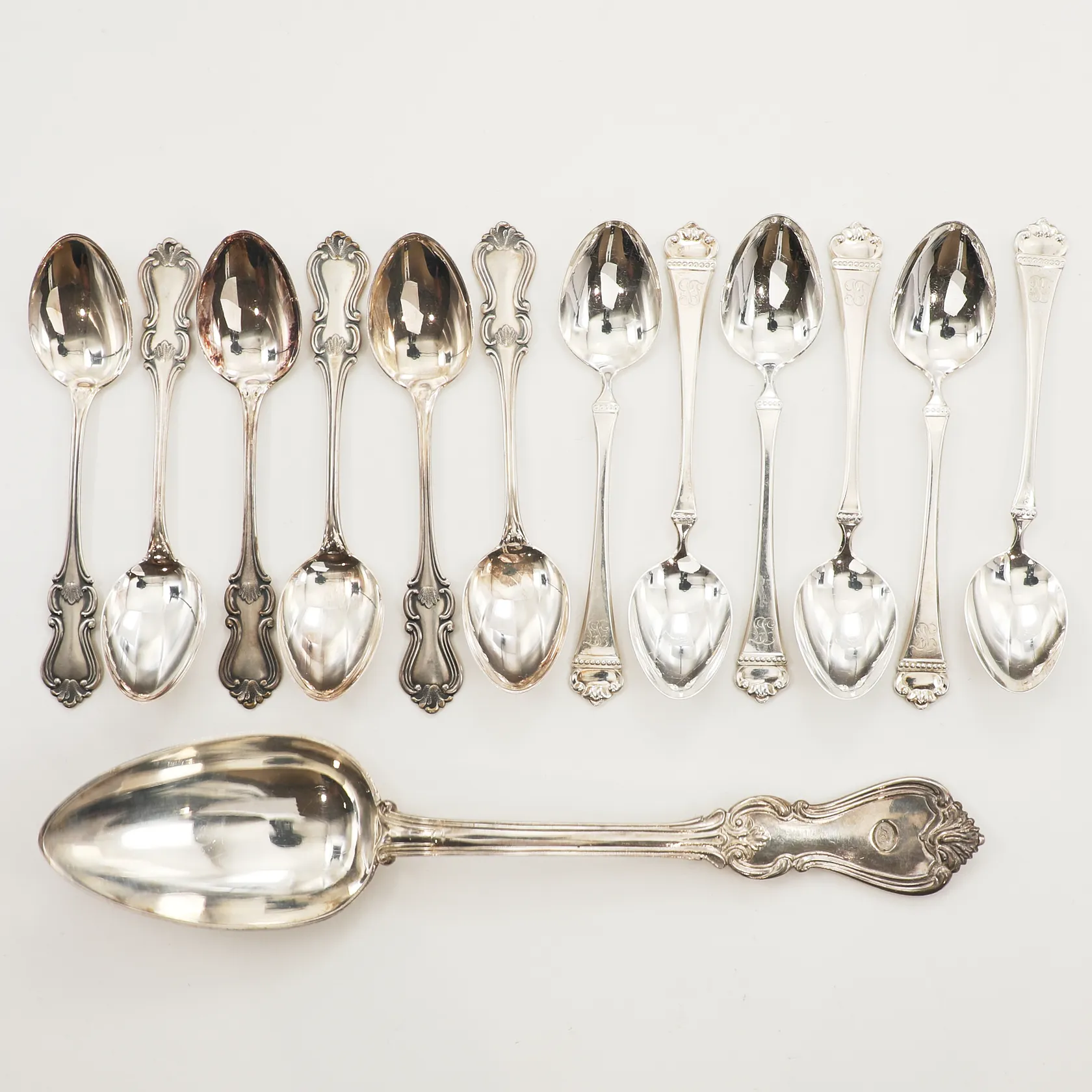 Tretton skedar, olika modeller, gravyr, 830/1000 silver Vikt: 227,3 g.