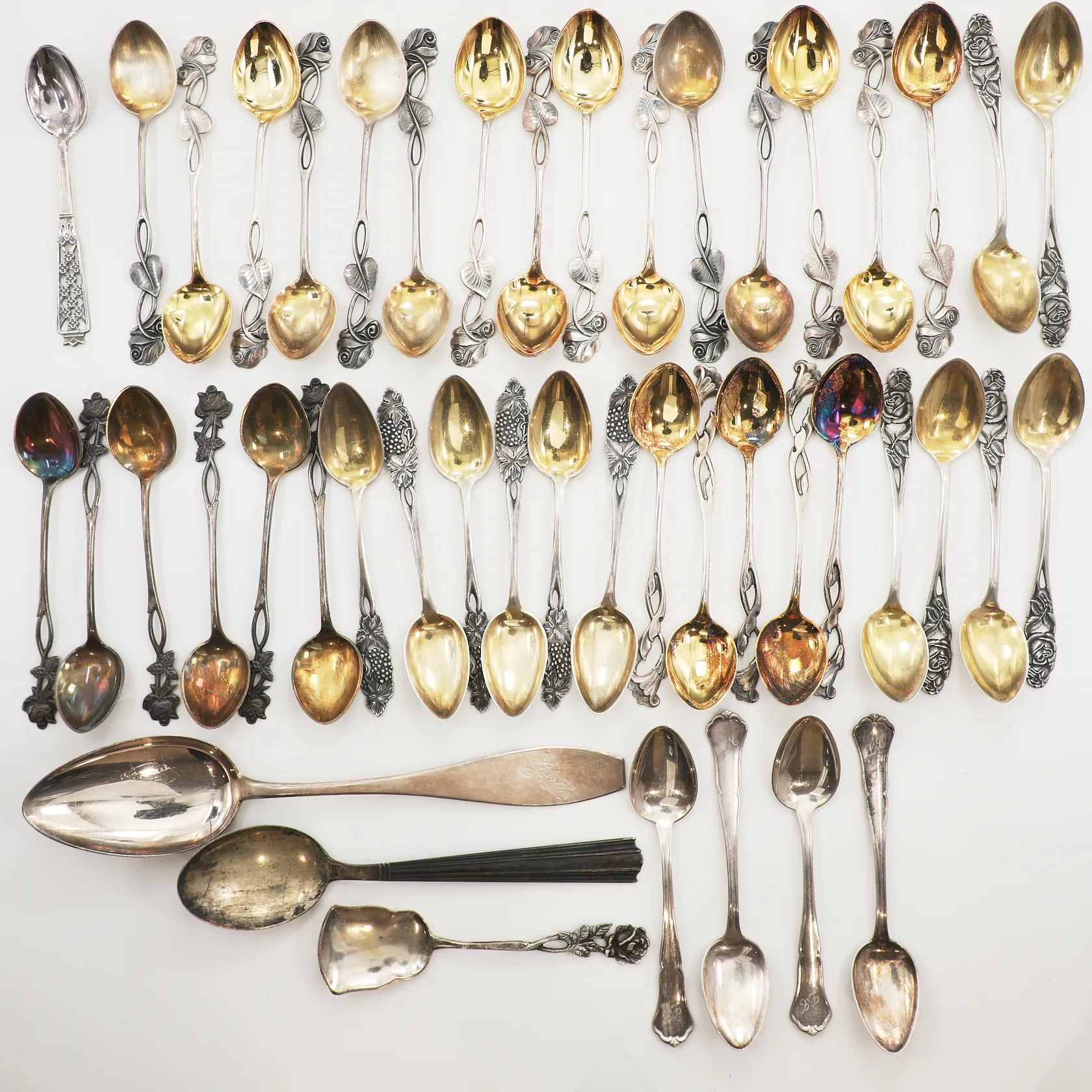 Fyrtiosex skedar, gravyr, 816/1000 silver Vikt: 529,7 g.