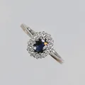 Ring i carmosé med diamanter 12xca0,02ct samt blå sten, stl 18½, bredd 2-10mm, vitguld, 18K Vikt: 3,7 g.