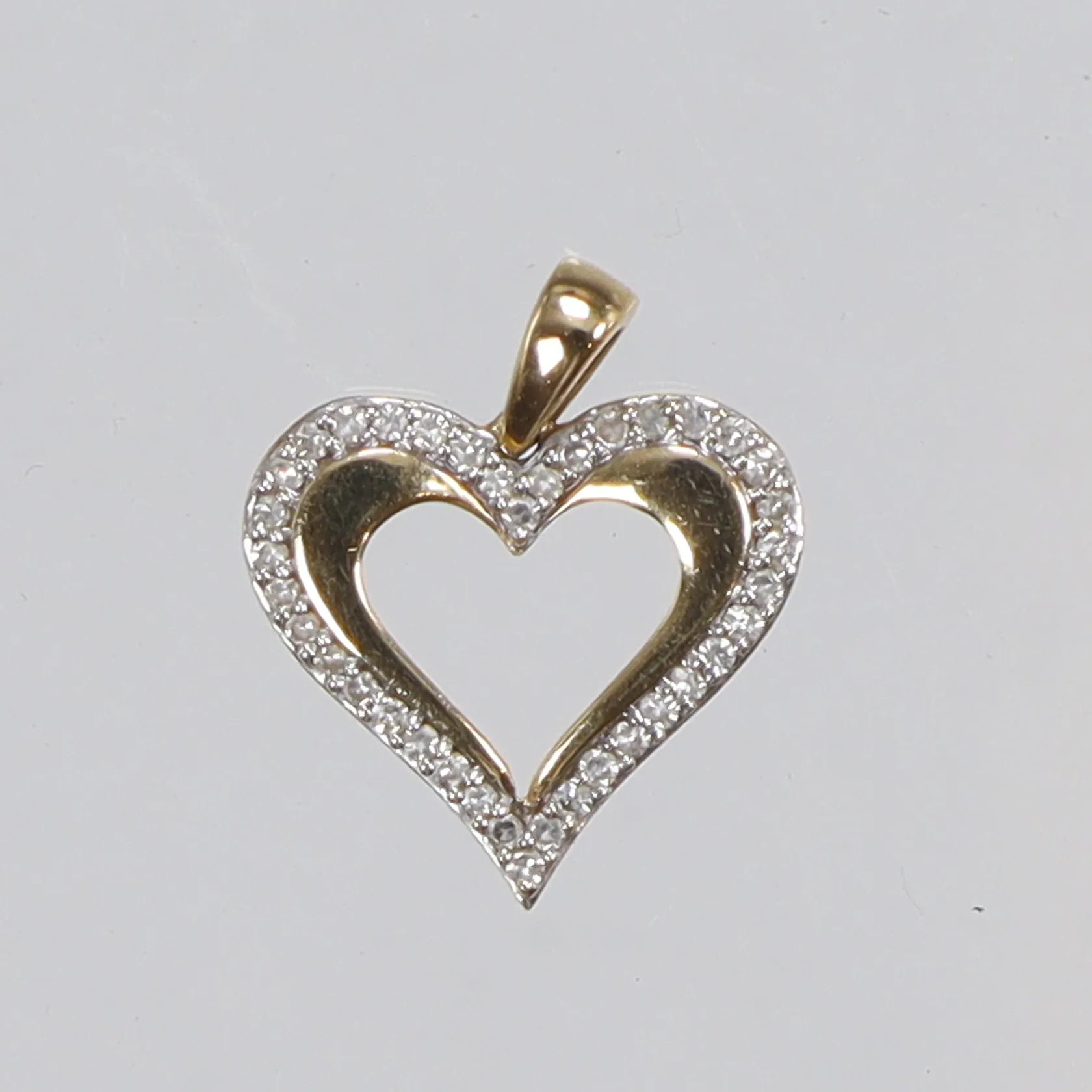 Hänge hjärta med vita stenar, 15x12mm, 18K Vikt: 0,9 g.