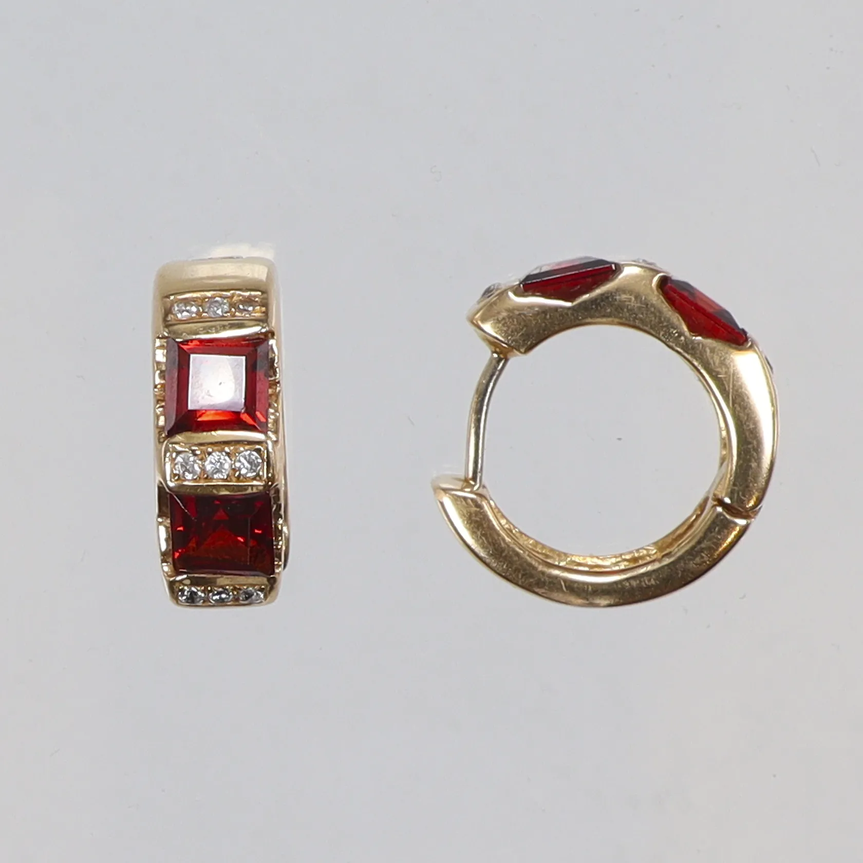 Ett par Örhängen med vita och röda stenar, creolmodell Ø18mm bredd 6mm 18K Vikt: 10,7 g.