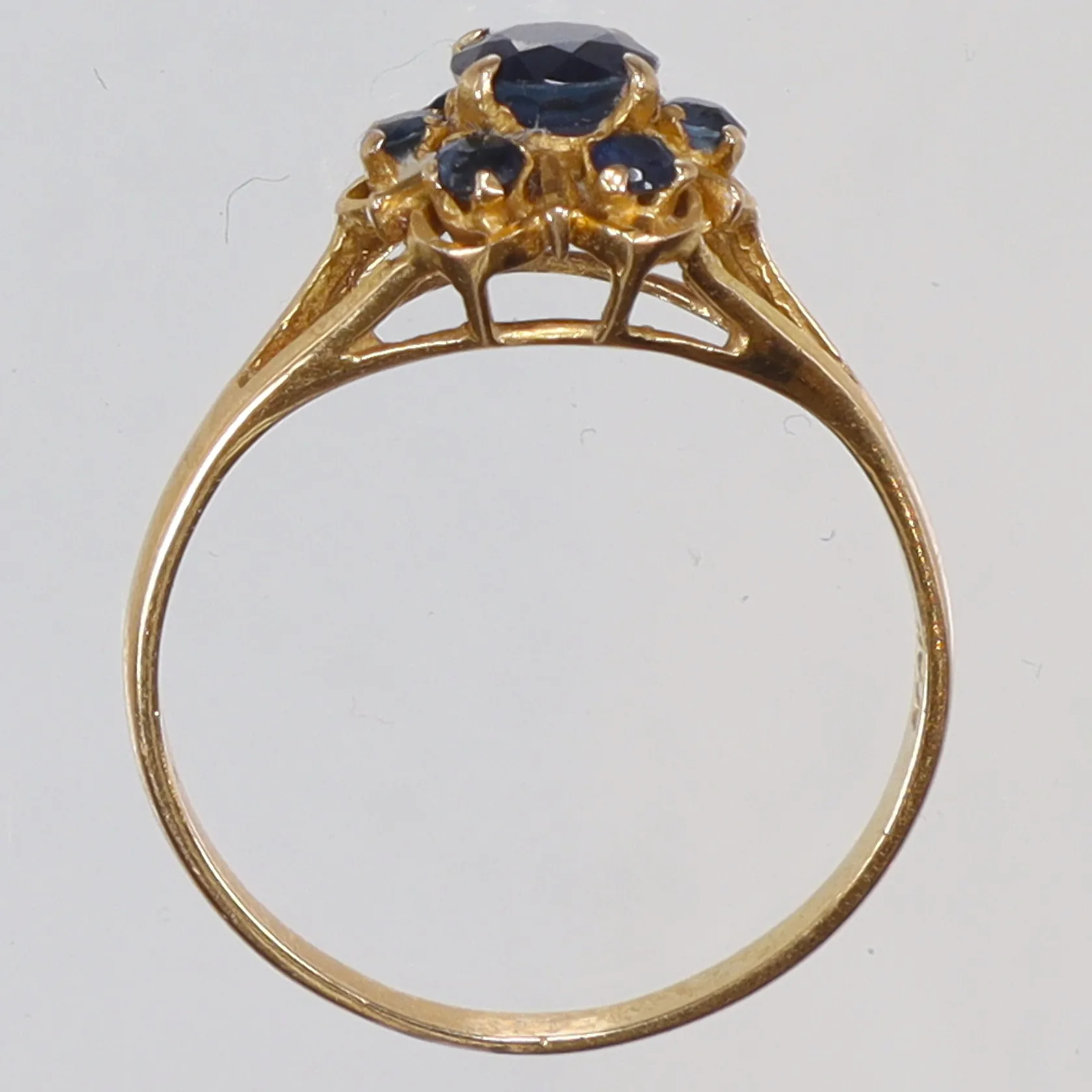 Ring med blåa stenar stl 16¾ bredd 1,5-8mm 21K Vikt: 1,9 g.