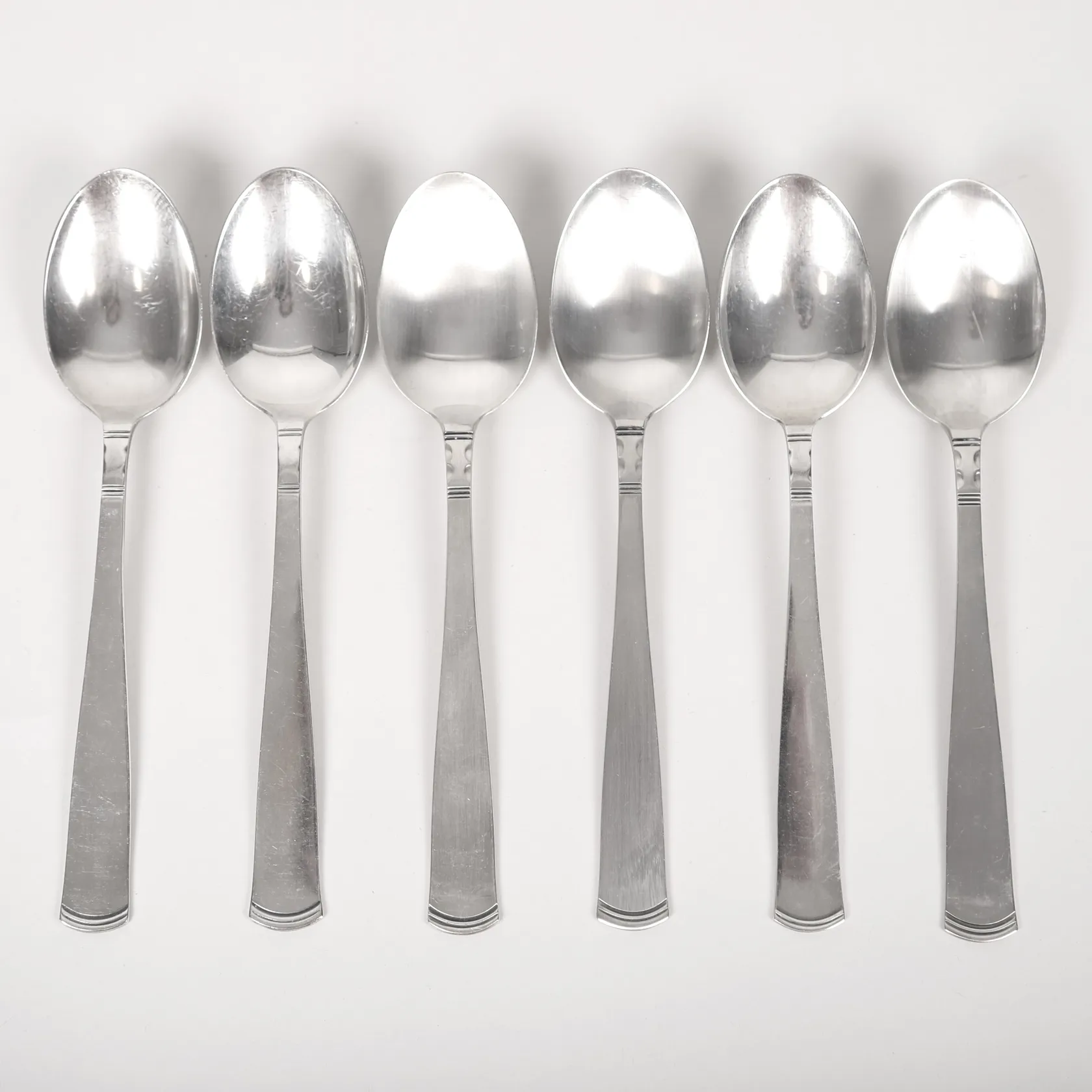 Sex Bordsskedar, modell Rosenholm, GAB, Eskilstuna och Stockholm, 1900-talets andra hälft, längd ca 18,2cm, bruksslitage, silver, bruttovikt 250,7 g