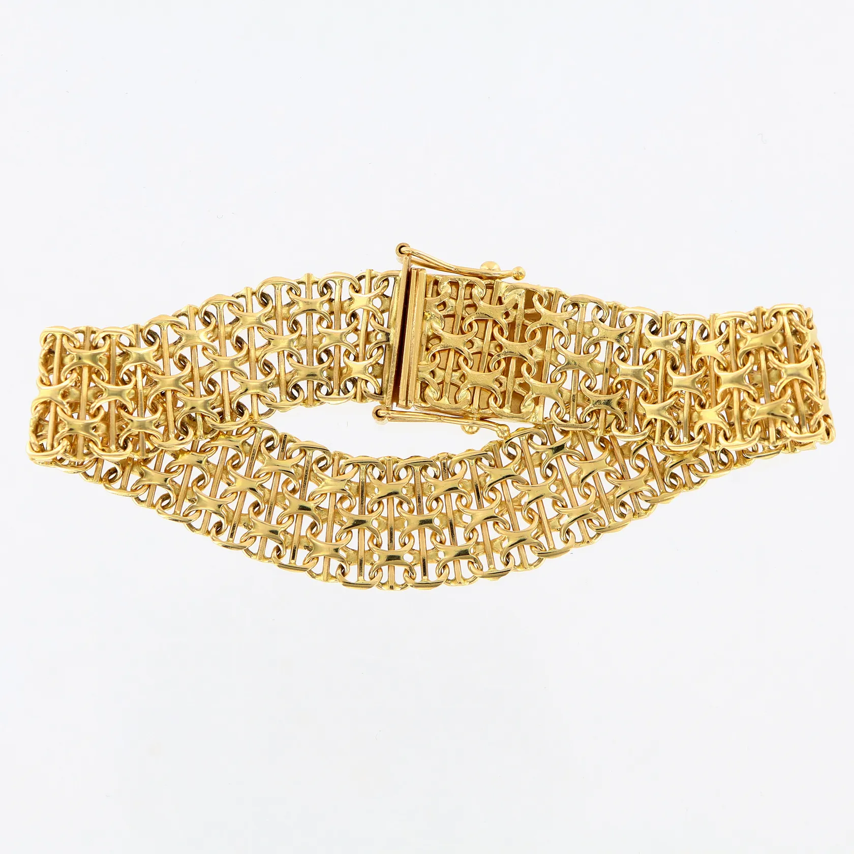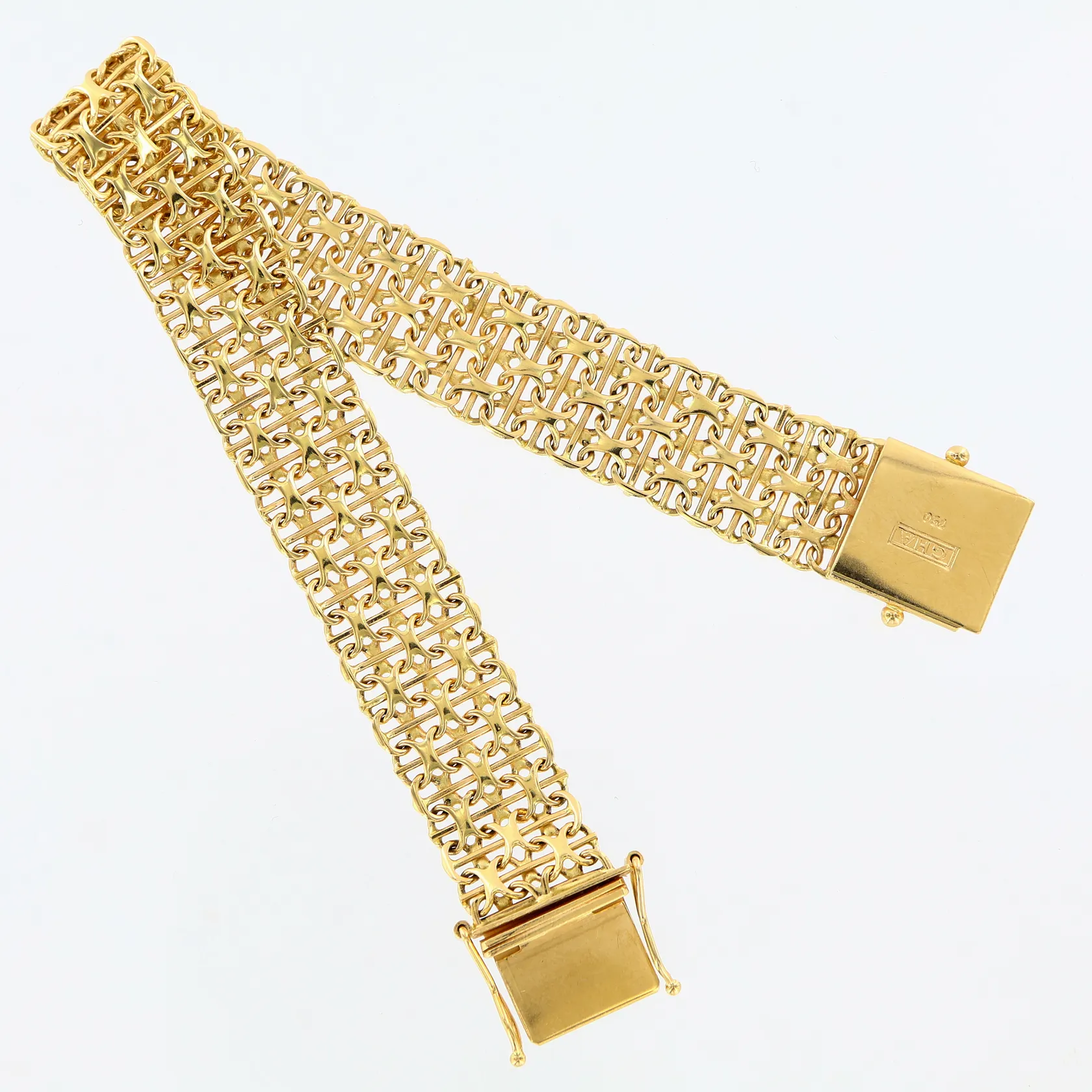 Armband X-länk med stav, ca 19cm, bredd 13mm, GHA, 18K Vikt: 25,3 g.