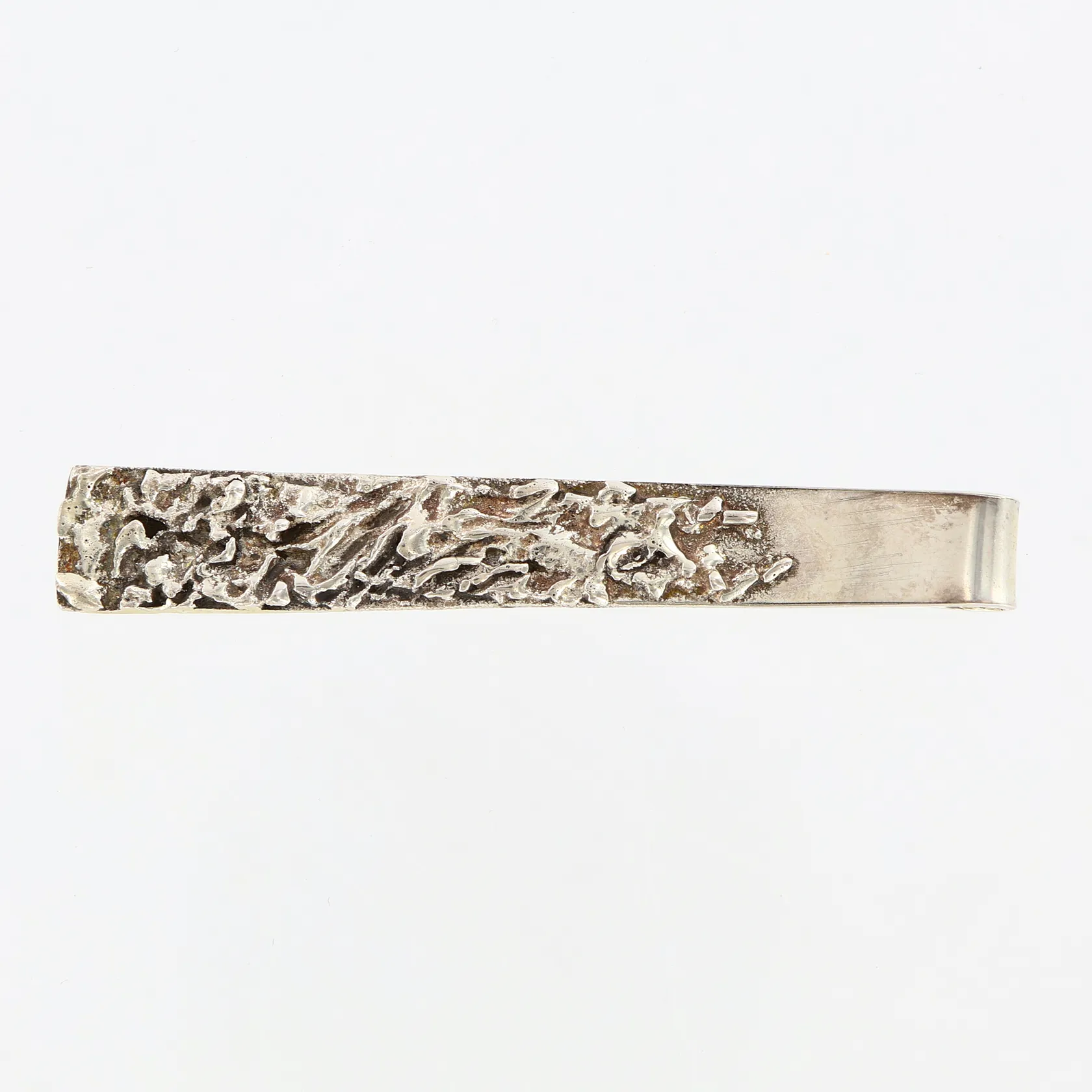 Slipsklämma med oregelbunden dekor, 62mm, bredd ca 10mm, silver 925/1000 Vikt: 12 g.