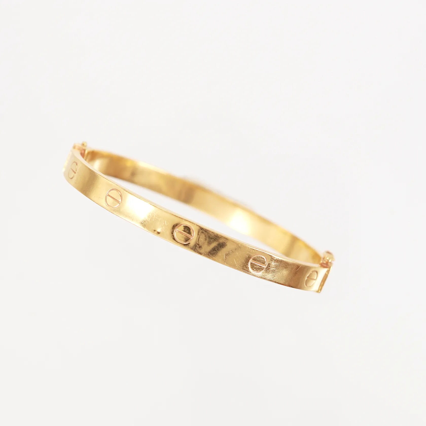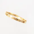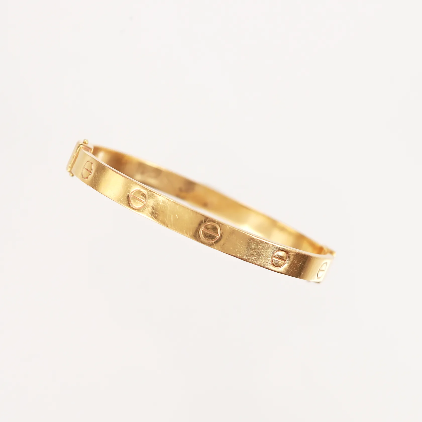Armring, inre omkrets ca. 17cm, bucklor samt skevheter, 21K OBS! ej märkesdesign. Vikt: 13,9 g.