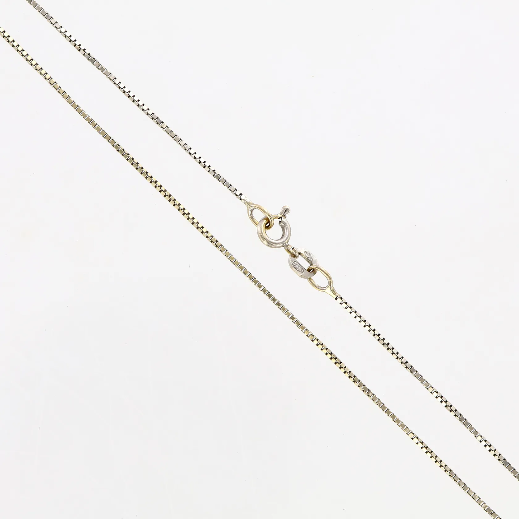 Kedja Venezia i vitguld, ca 43cm, bredd ca 1mm, behov av omrodinering, skev ögla vid lås, 18K Vikt: 2,6 g.
