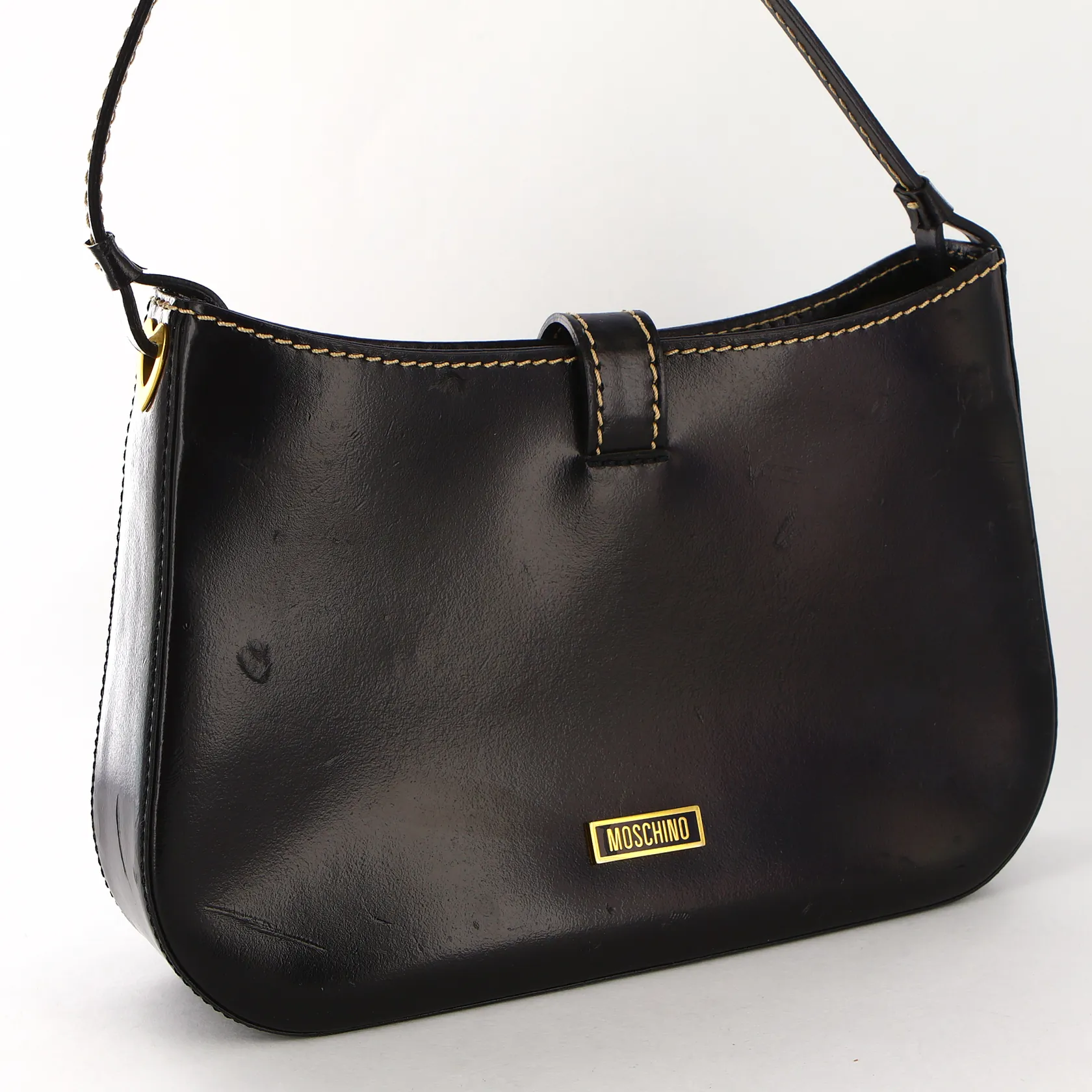 Handväska Moschino, läder med guldfärgade beslag, mått ca 25x39,7cm, rött foder, kraftigt slitage/märken utvändigt