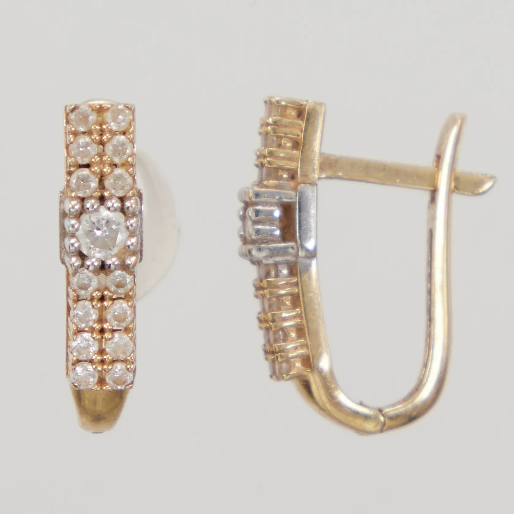 Ett par örhängen med vita stenar, 12mm, bredd 3,8mm, 14K Vikt: 2,2 g.