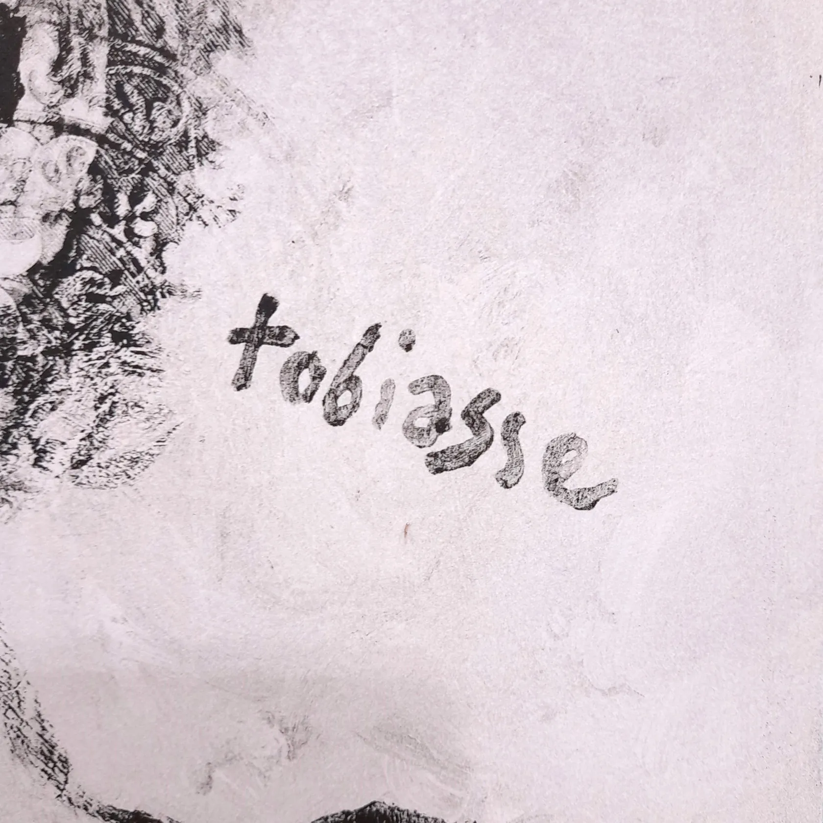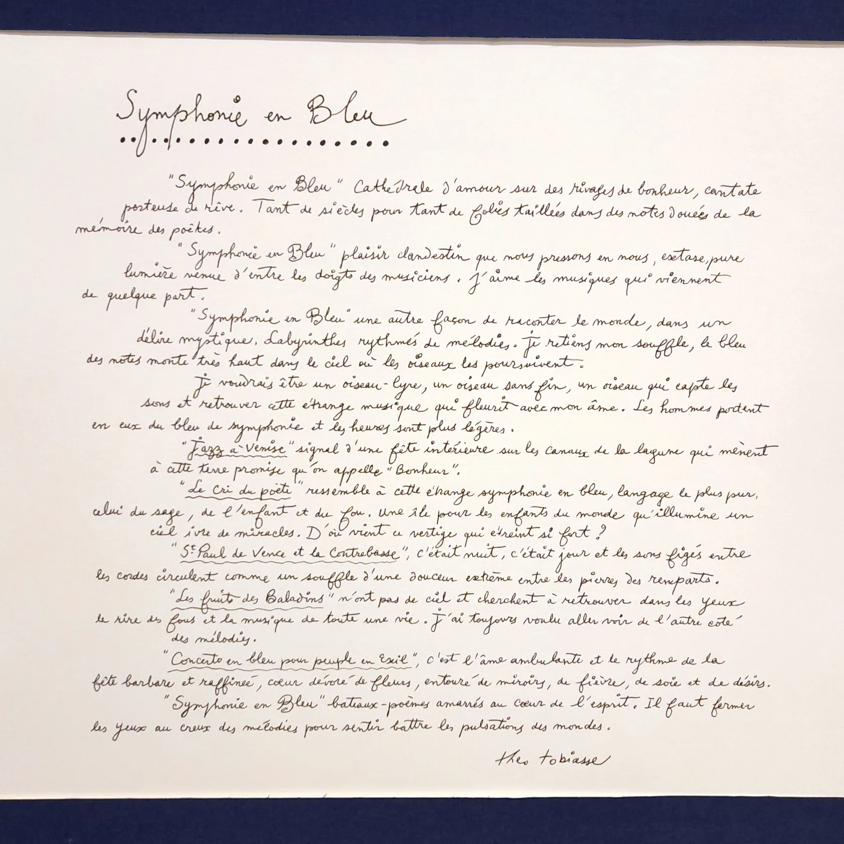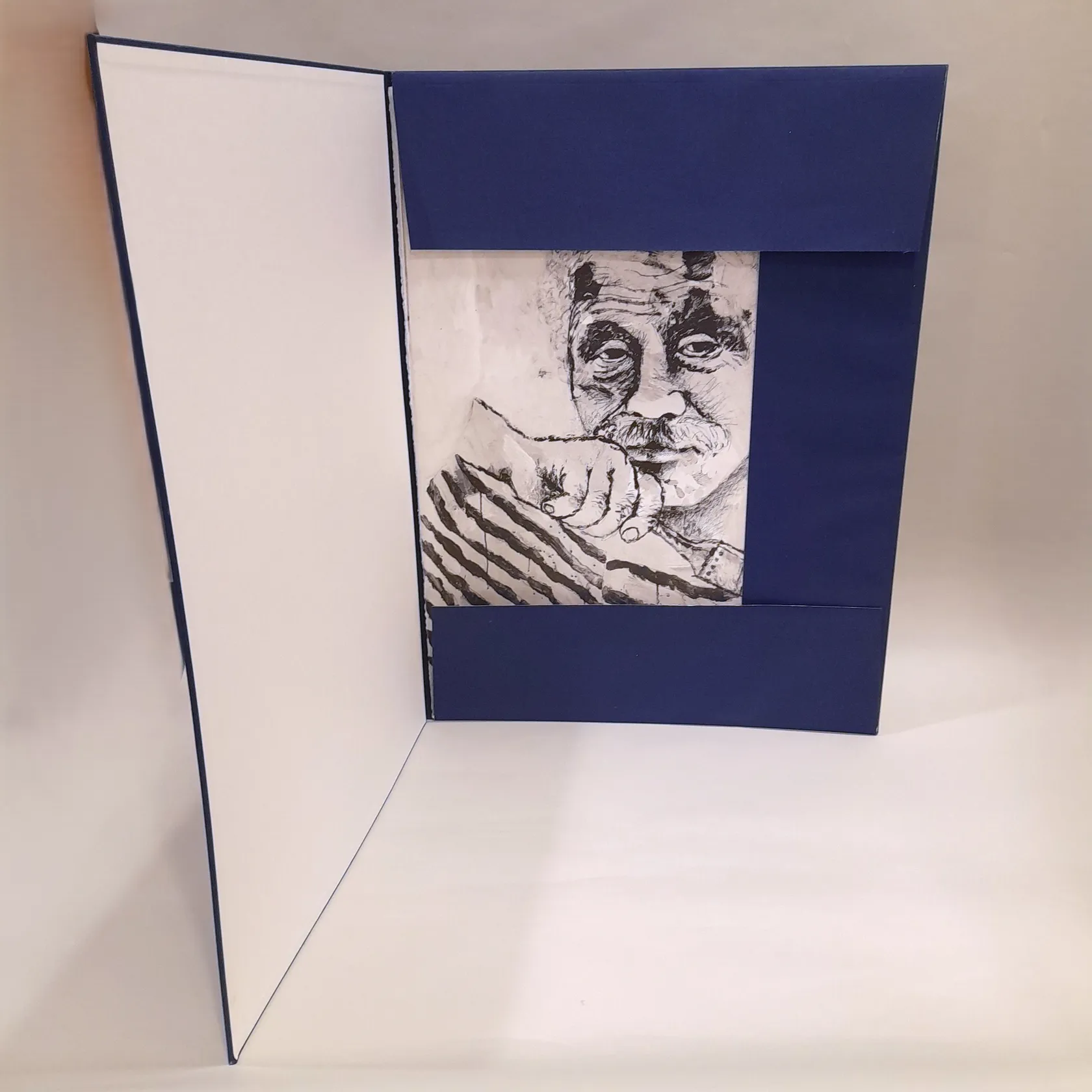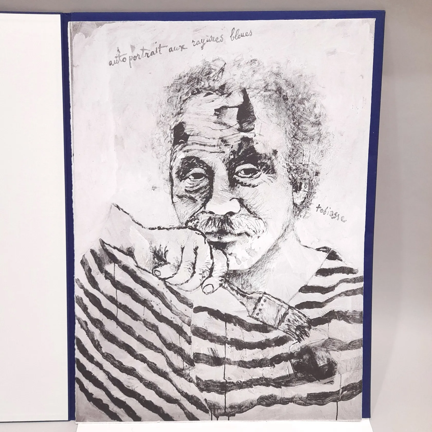 Grafiskt blad, Theo Tobiasse, självporträtt, Autoportrait aux rayures bleues Tobiasse, ur Symphonie en Blue, bildmått 76x56cm, signerad i trycket, oramad, i portfolio Skickas med postpaket.