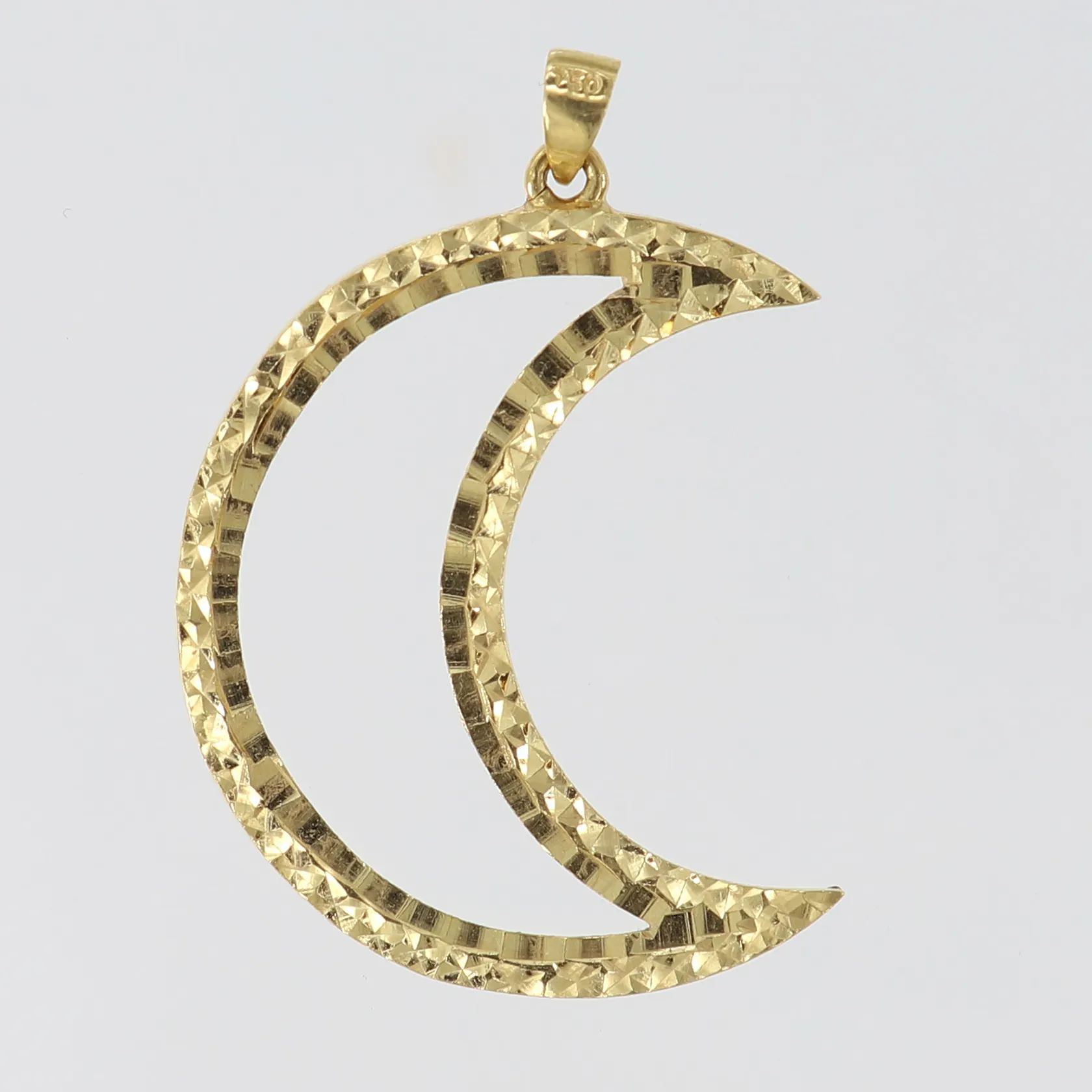 Hänge måne, 35,5x25mm ink ögla, 18K. Vikt: 2,4 g.