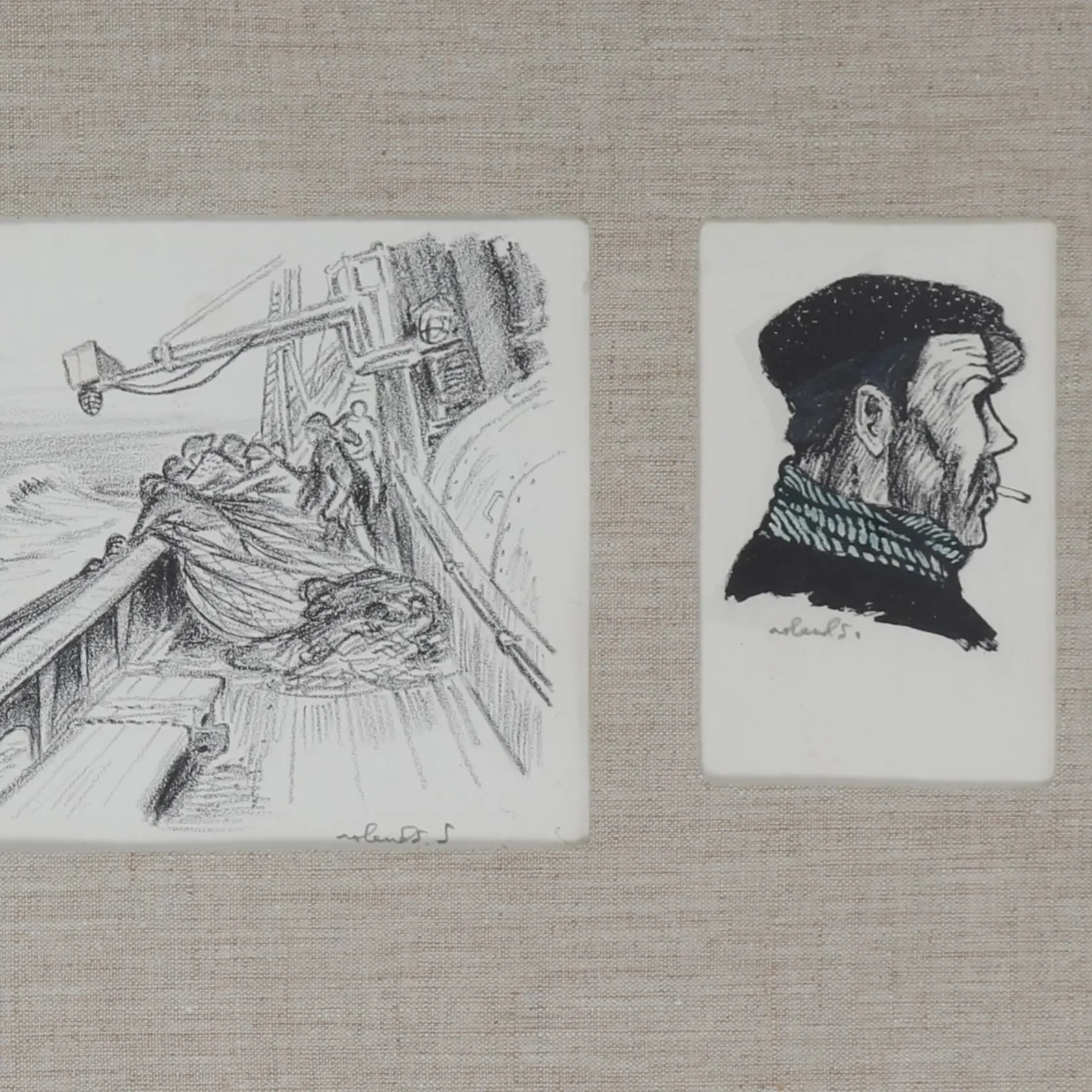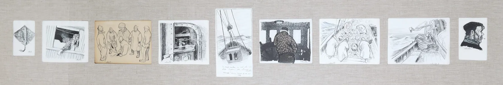 Tavla, Roland Svensson, bildserie, blyerts/kol på papper, samtliga signerade. Omfattas av BUS-avgift.