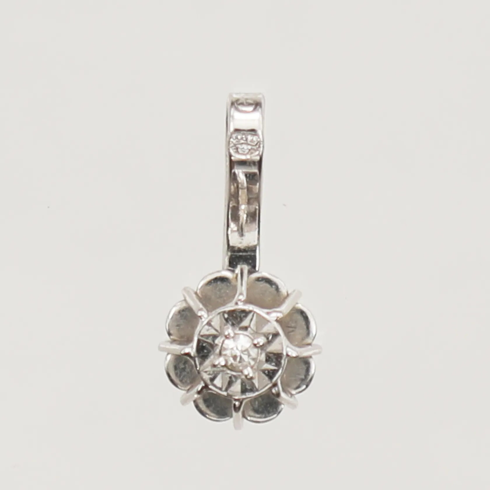 Hänge med diamant 1x ca 0,01ct, ca 10mm, bredd 5mm, vitguld, 18K Vikt: 0,4 g.