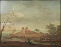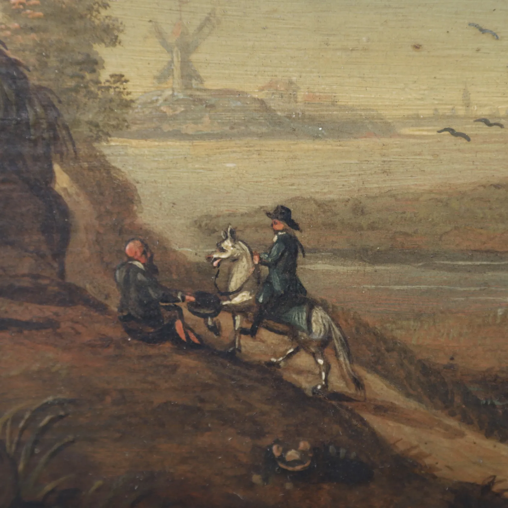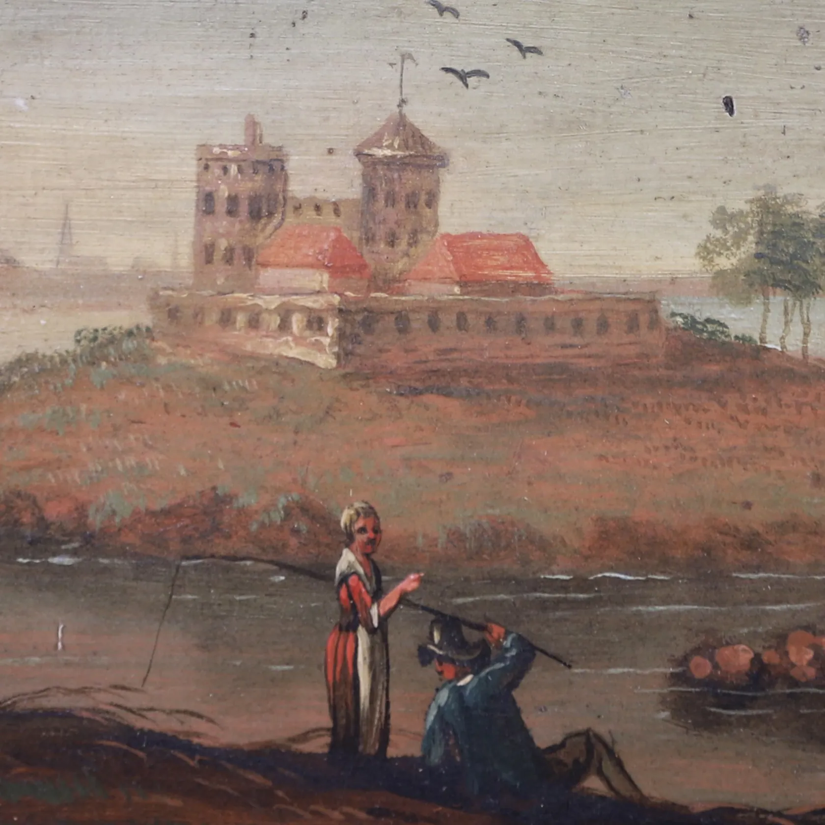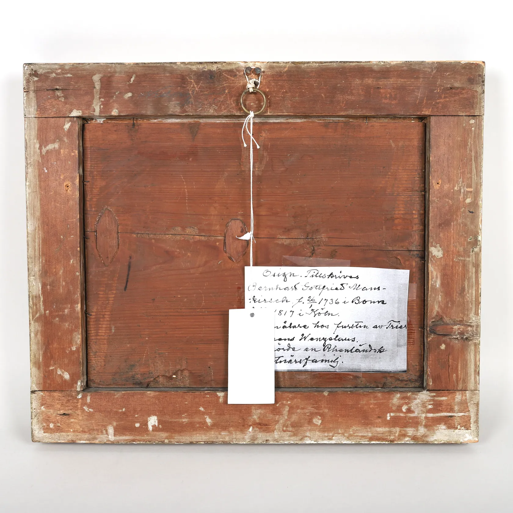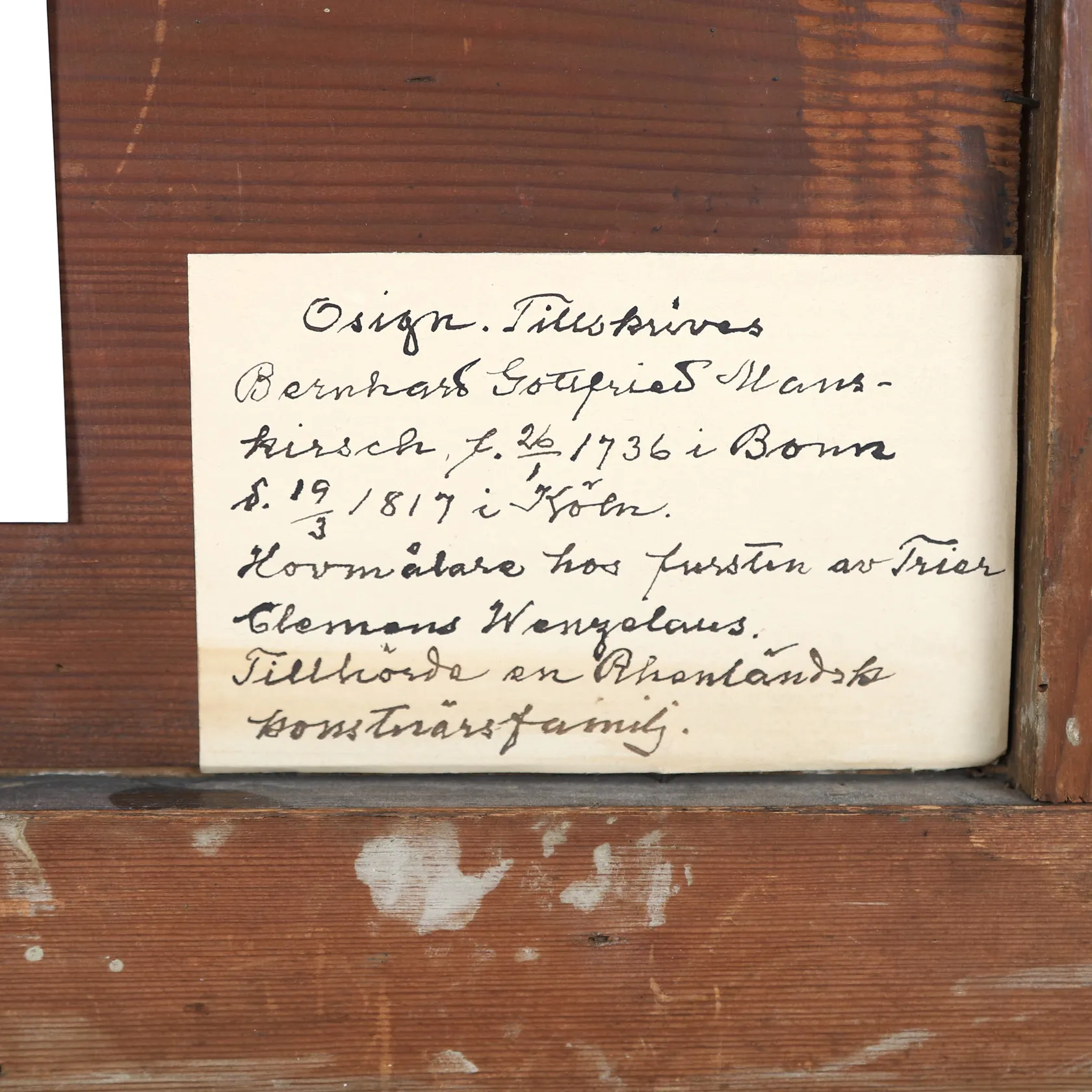 Två tavlor, olja på pannå, Bernard Gottfried Mankirch, tillskrivna, osignerade, 30x37cm, 29x37cm, en med spricka i pannån, ytslitage, ramar med mindre avslag.
