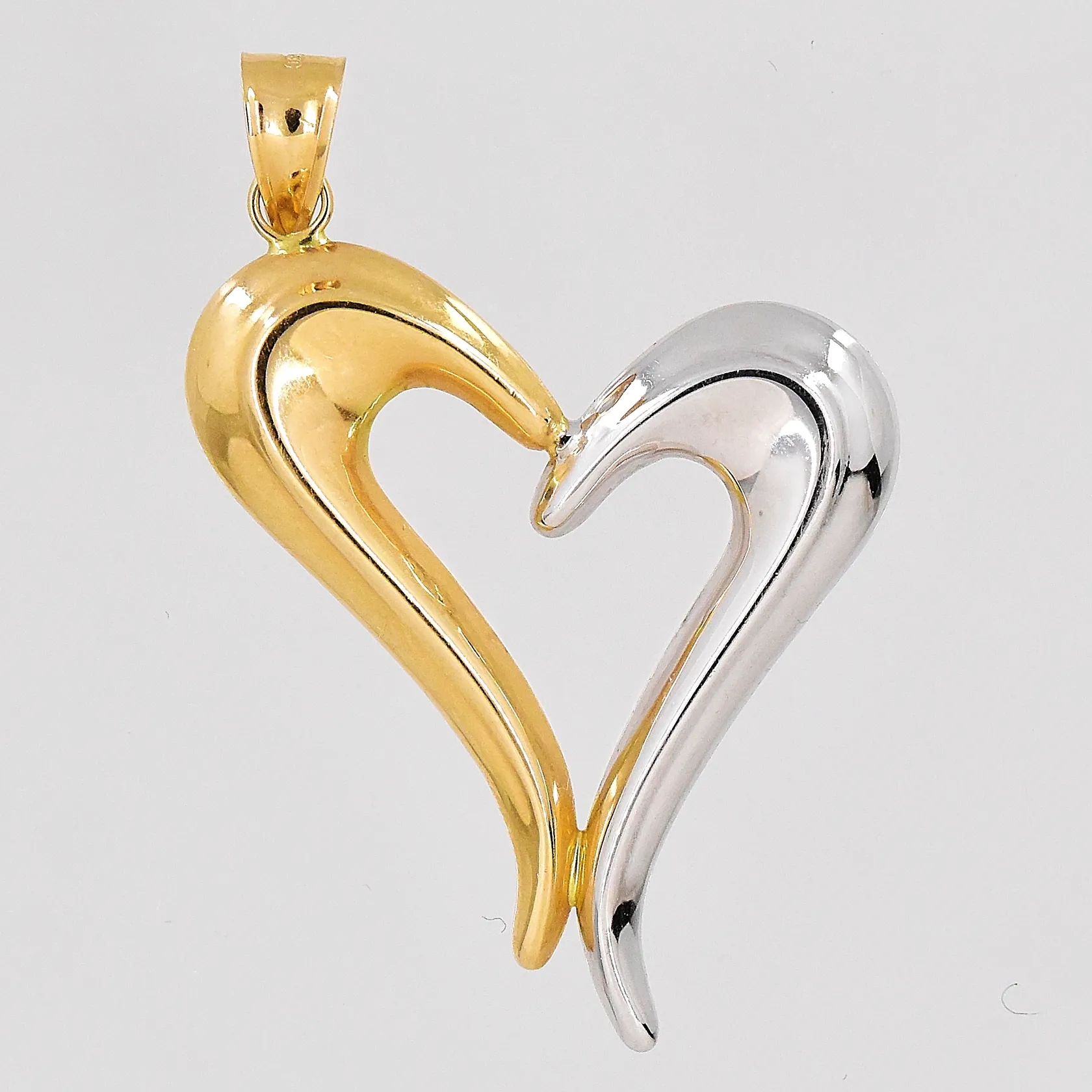 Hänge hjärta, ca 22,5x35mm inklusive ögla, vitguld/gulguld, ihålig, GHA, 18K Vikt: 1,5 g.
