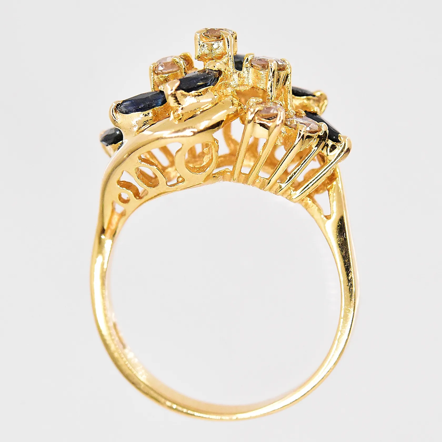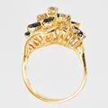 Ring med cognacsfärgade diamanter, ca 0,30ctv, blå stenar, stl 16½, 18K Vikt: 4,6 g.