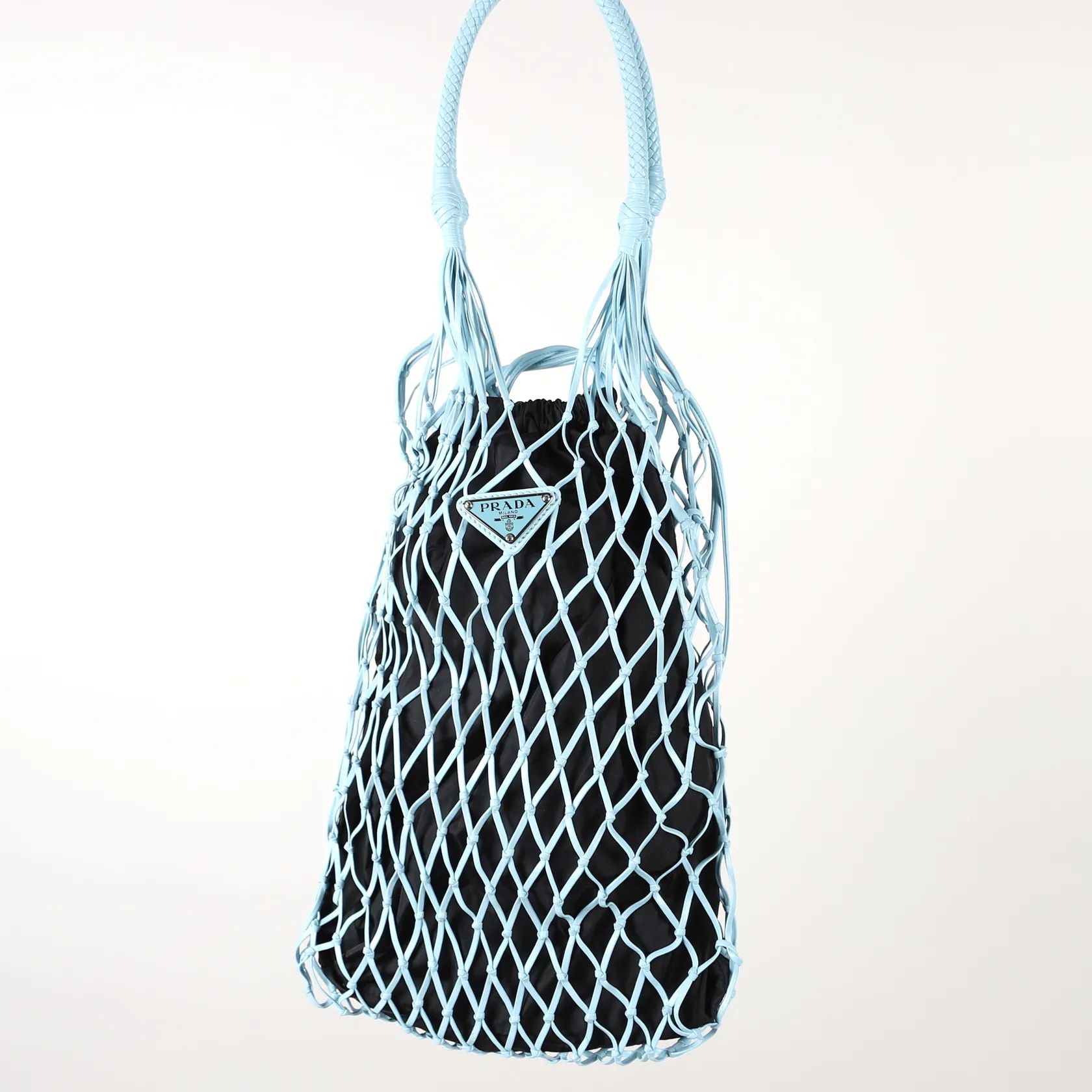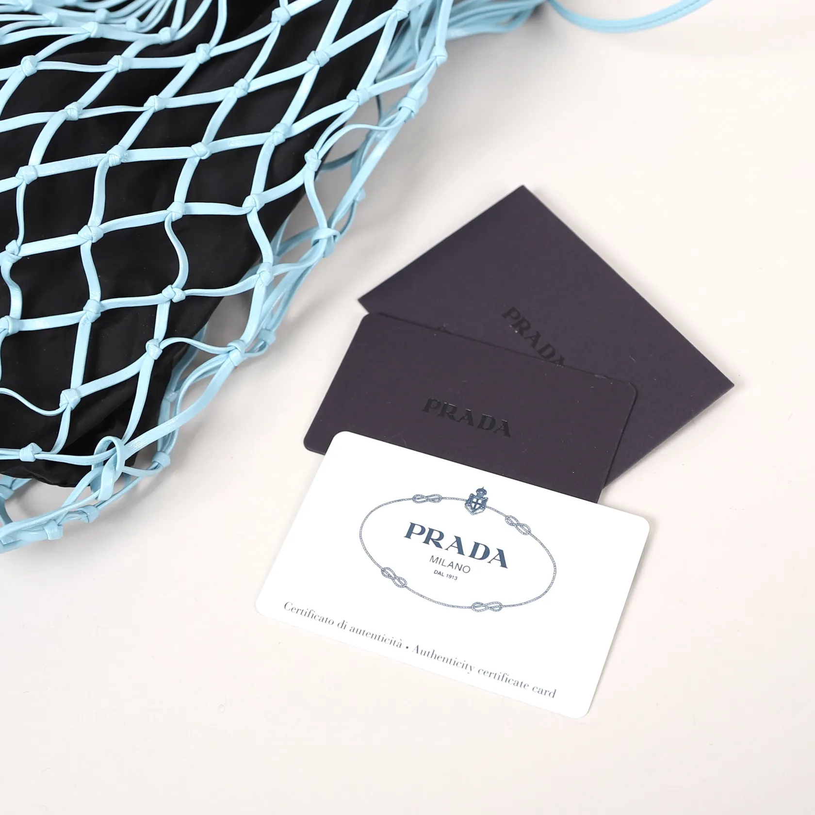 Väska, Prada, Rete Tessuto, ljusblått läder, invädigt svart påse av nylon, certifikat (ej i fyllt), ca 20x5x32, dustbag, smärre slitage.