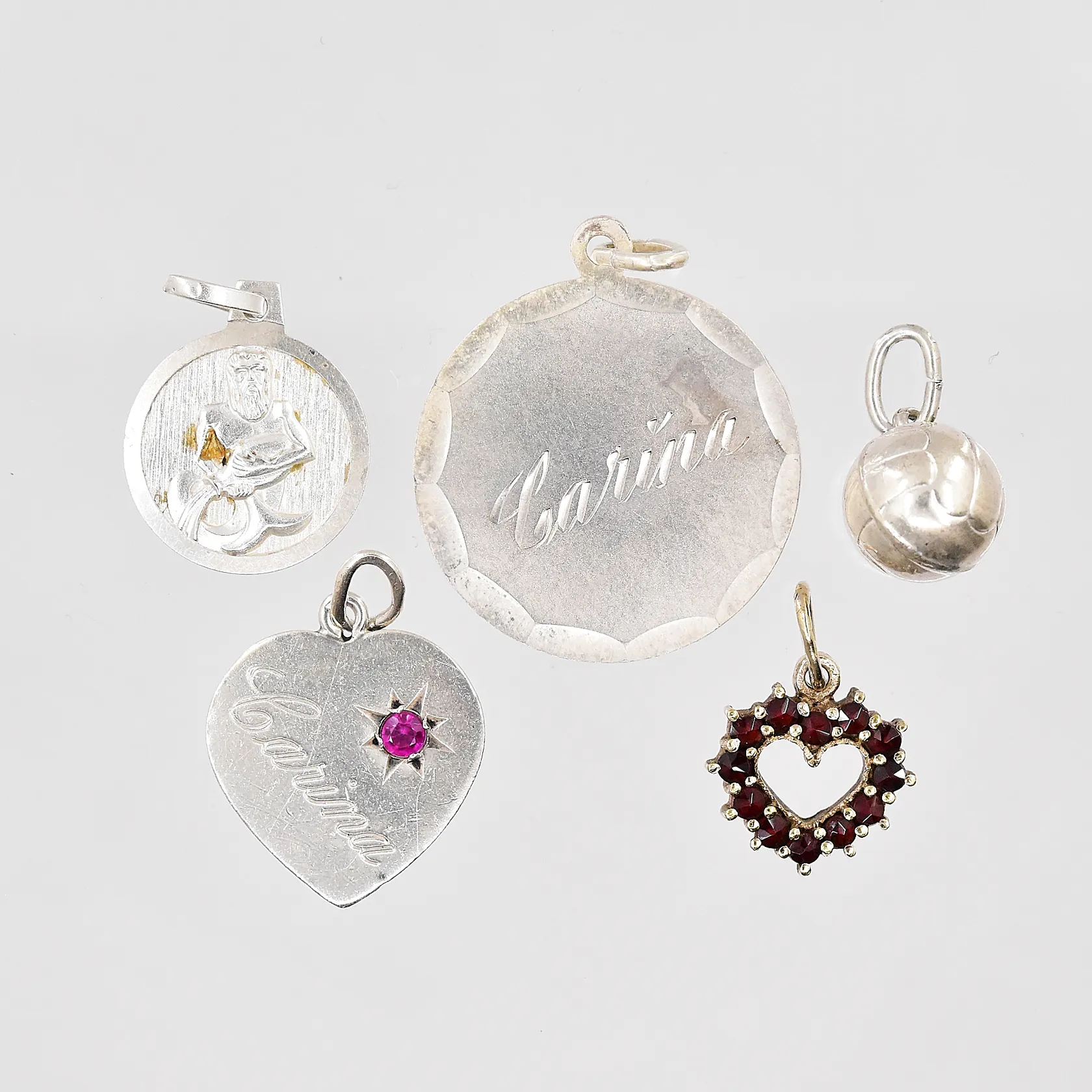 5 Hängen, gravyrer finns, silver Vikt: 8,3 g.