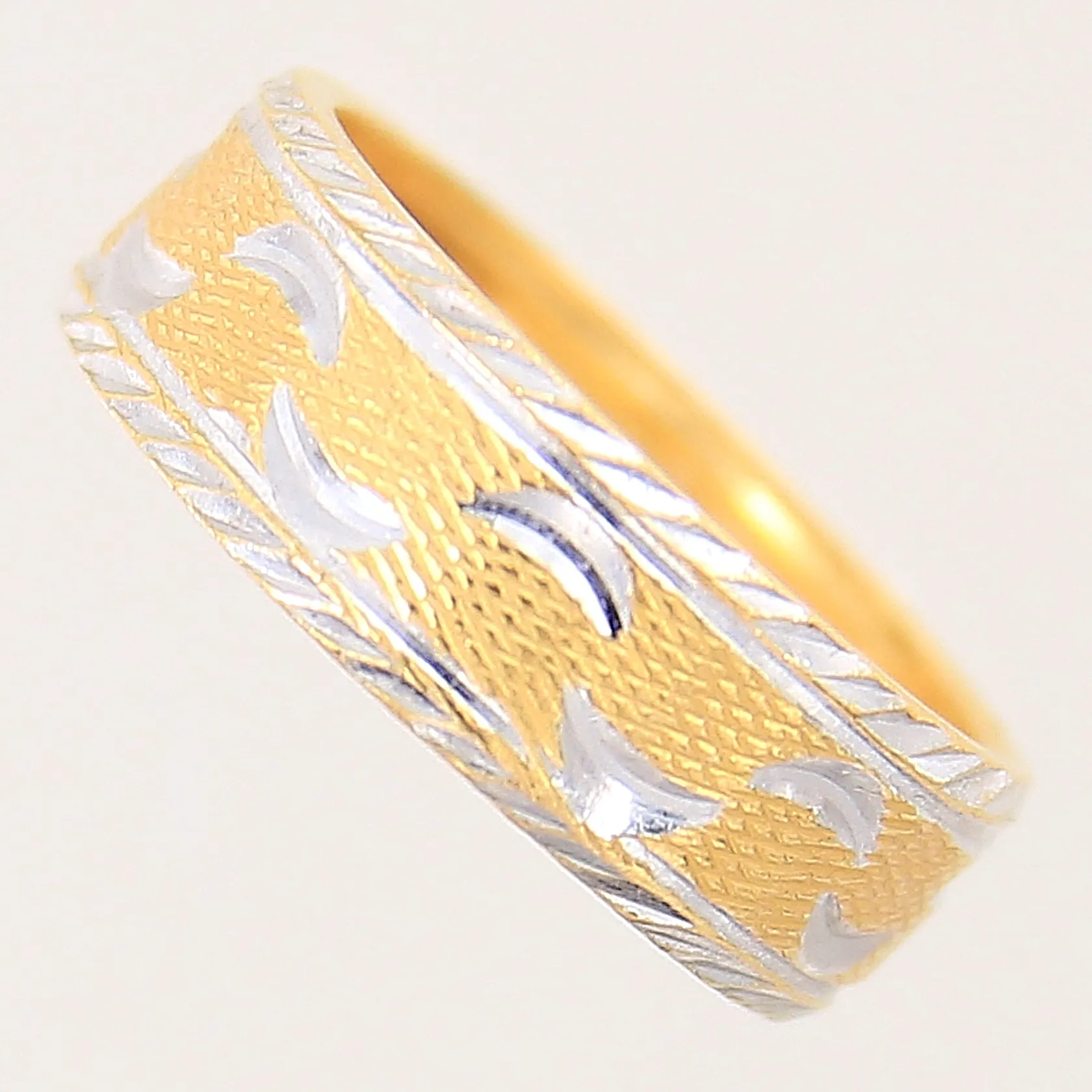 Ring med dekor samt vitguldsdetaljer, stl 16, bredd 6mm, något skev, Thaiguld, 23K Vikt: 3,8 g.