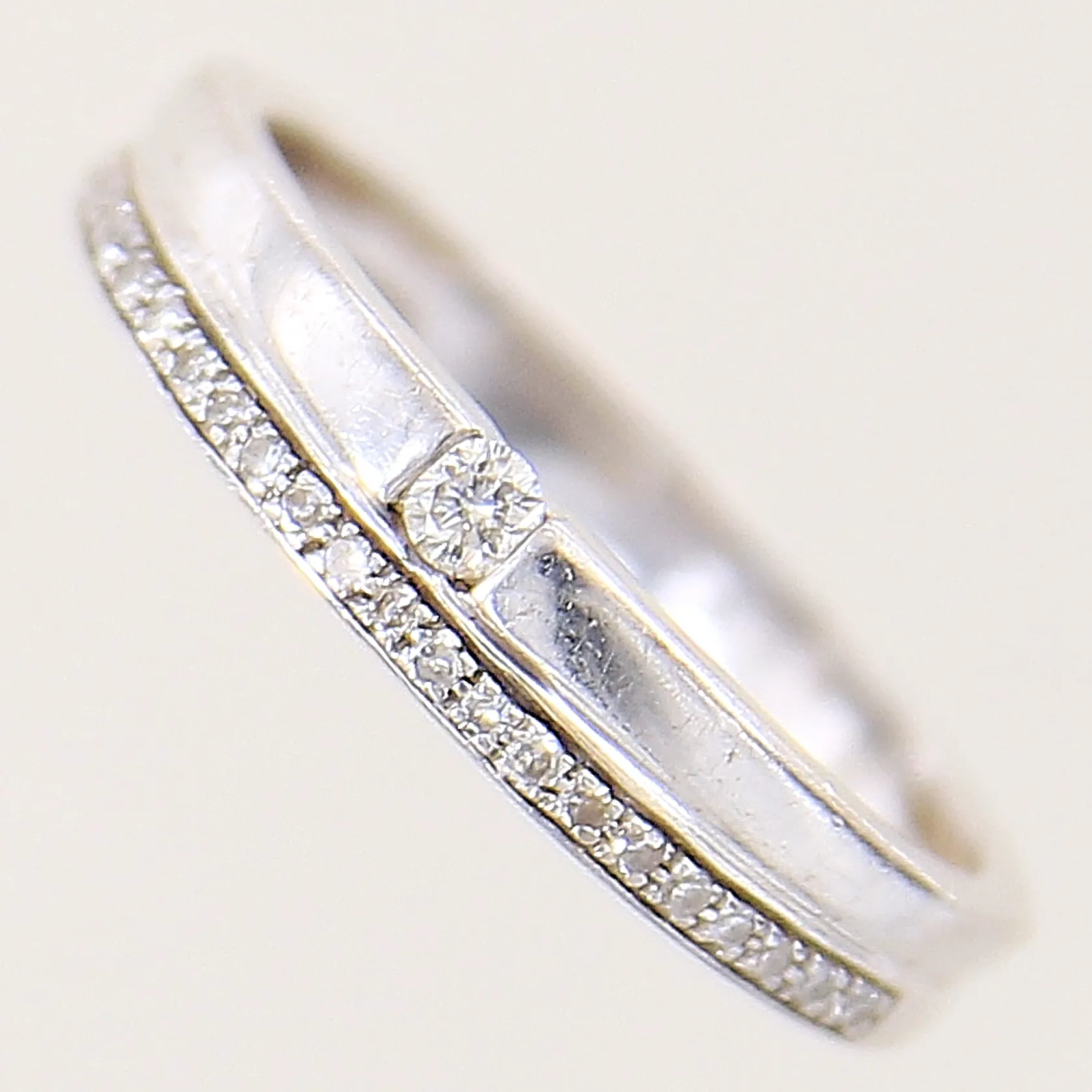 Ring med diamanter, 1 x ca 0,02ct, 22 x ca 0,005ct, stl 16½, bredd 2,5mm, vitguld, gravyr, GHA, 18K Vikt: 2,8 g.