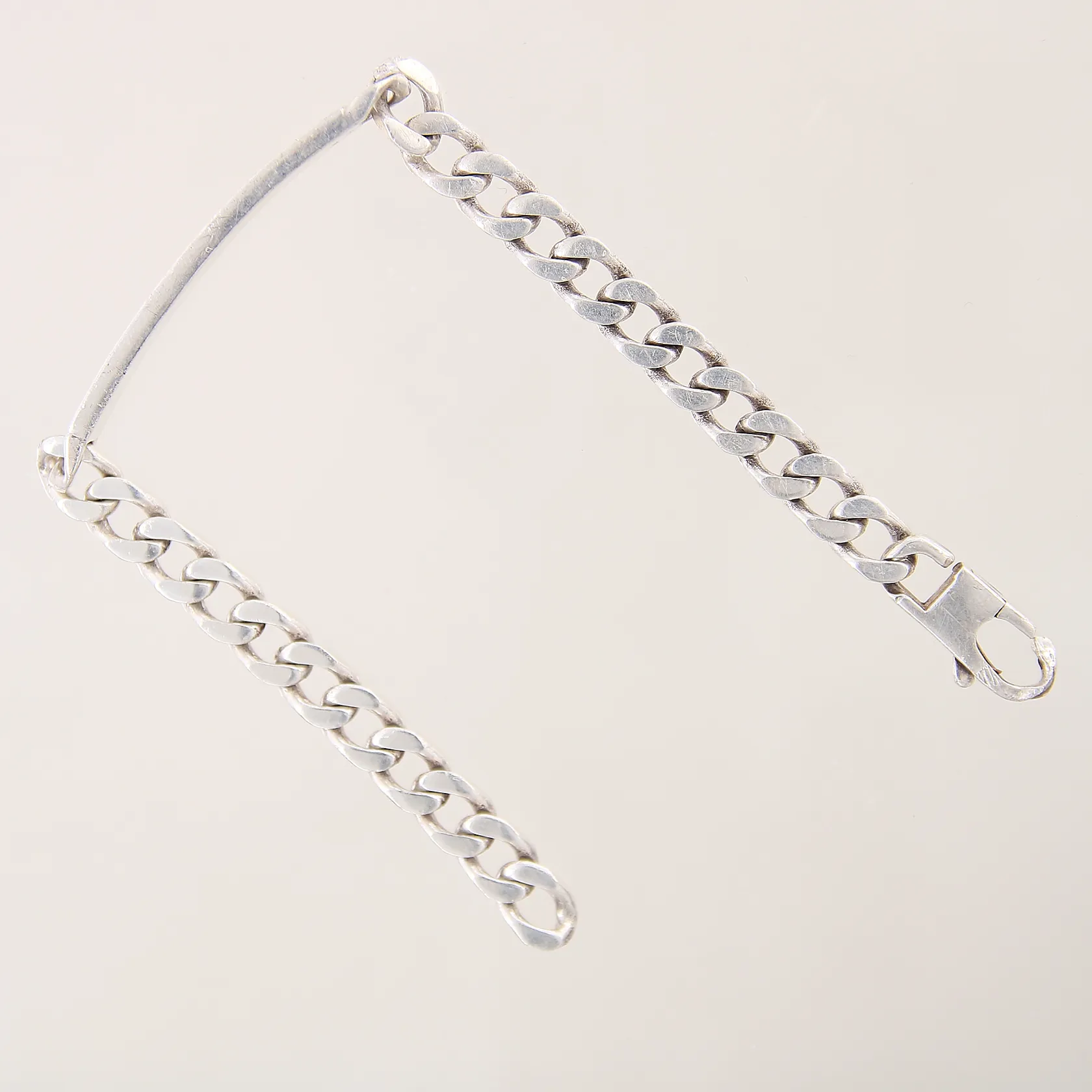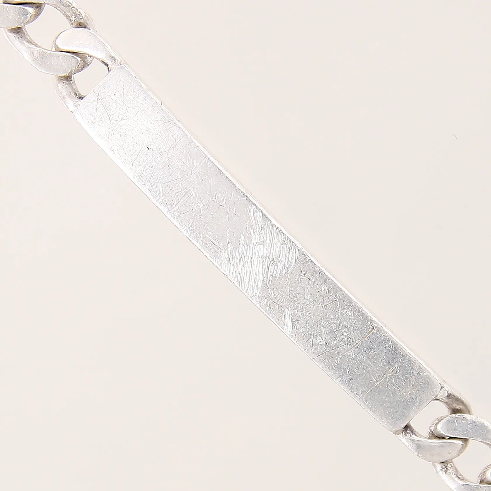 Armband Pansar med platta, längd 20cm, bredd 6,5mm, repigt, skadat lås, GHA, silver 925/1000 Vikt: 20 g.