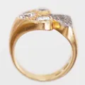 Ring med gammal-, samt briljantslipade diamanter, totalt ca 1,70ct, kvalitet ca TW-Cr(G-J)/VS-SI, tre stenar med nagg, stl: 17,5, tillverkad av Gunnar Fahlström AB, Hovjuvelerare, Stockholm 1989, 18K guld Vikt: 14,8 g.