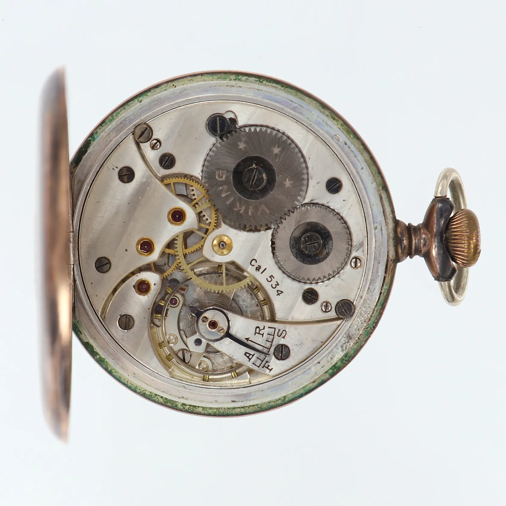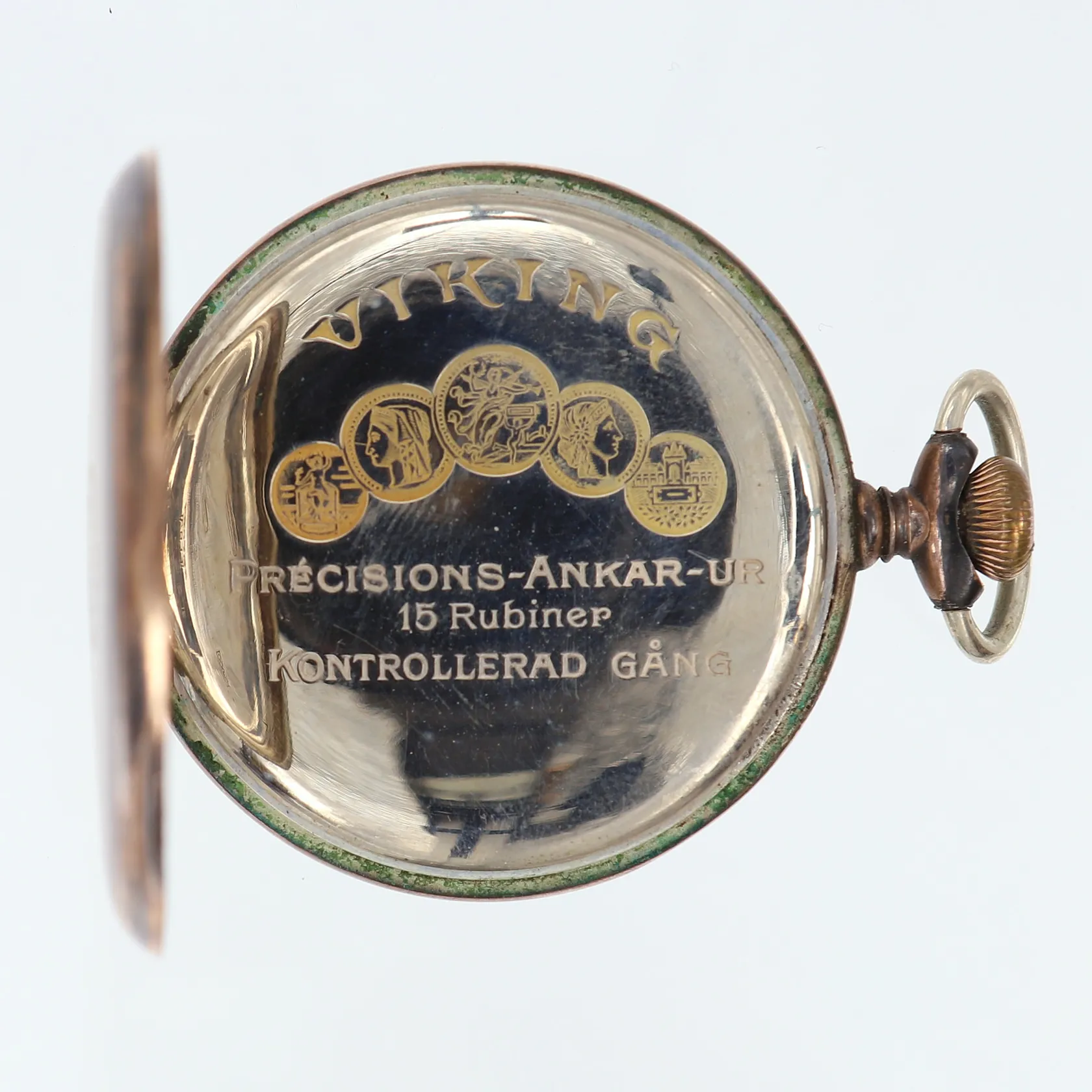 Fickur Viking, Ø50mm, innerboett i metall, defekt glas, går ej, Silver 800/1000. Vikt: 84,8 g.