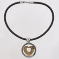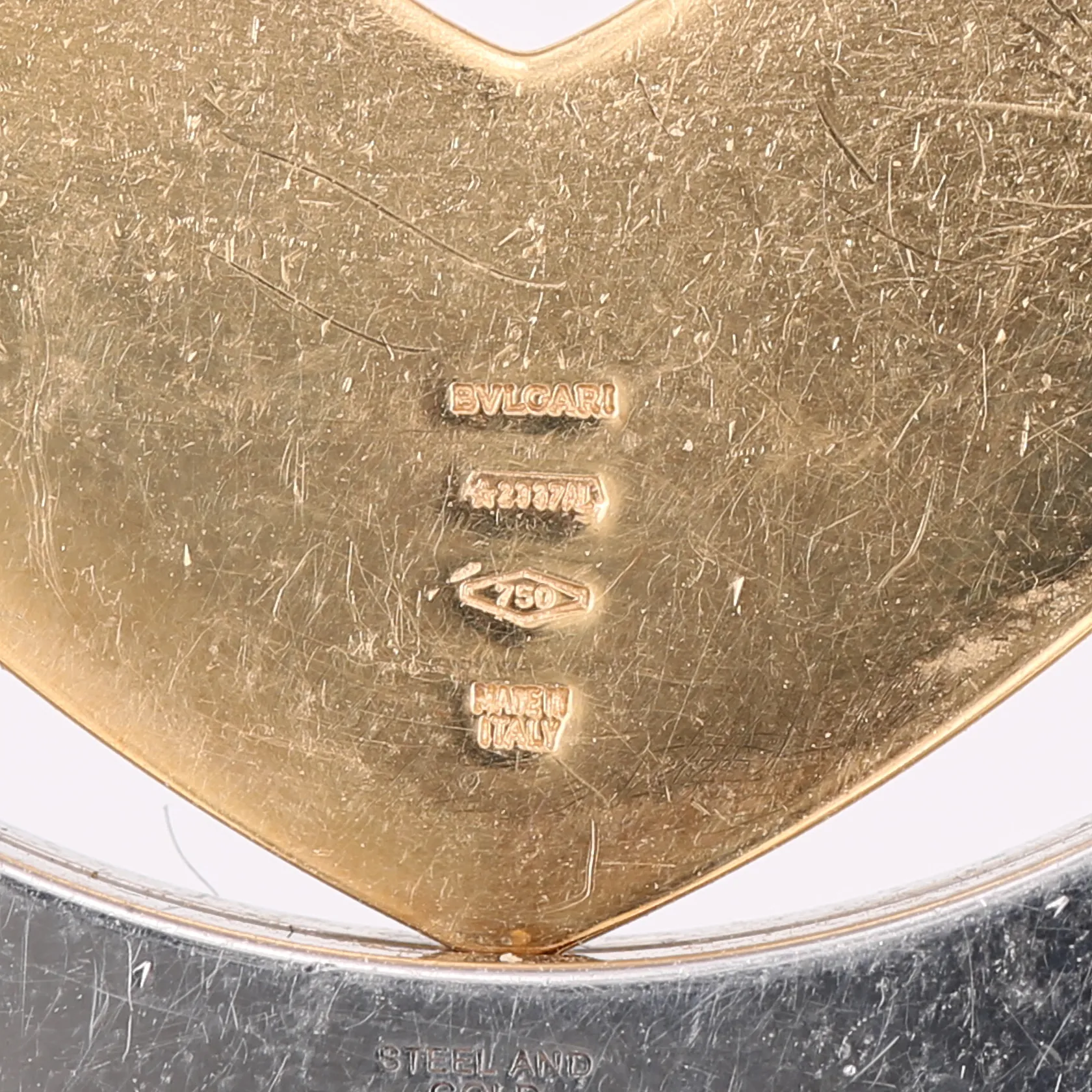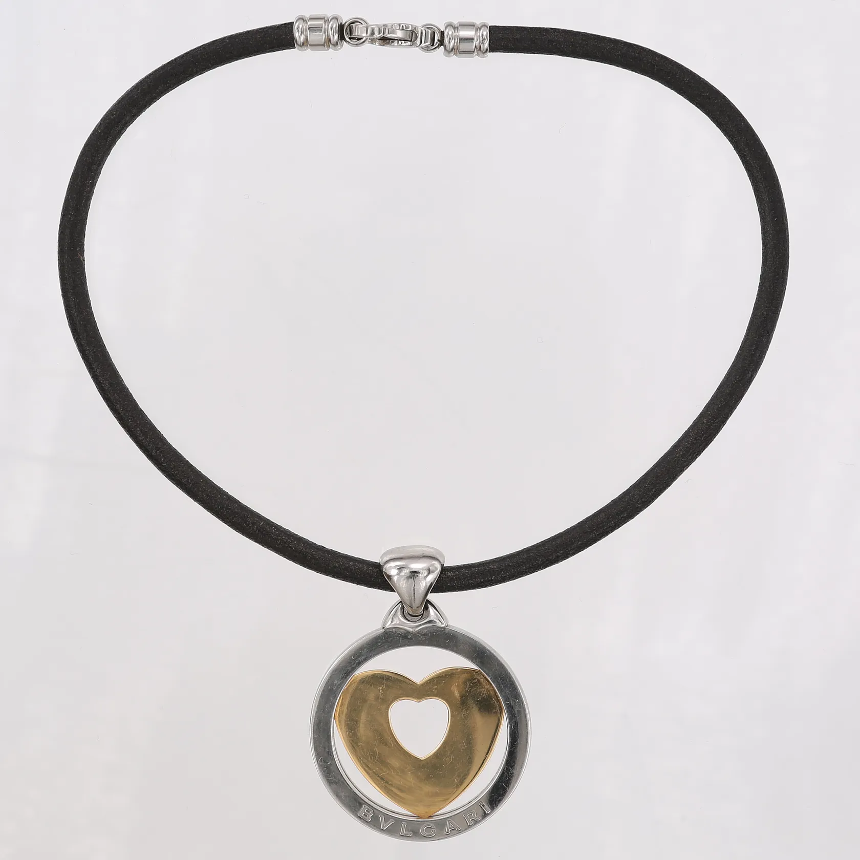 Collier Bvlgari, Tondo Heart Pendant, på läderrem med lås i metall, B-zero1, längd 39cm, höjd på hänge 58mm, bredd 43mm, stål och guld, inga tillbehör. Vikt: 38,6 g.