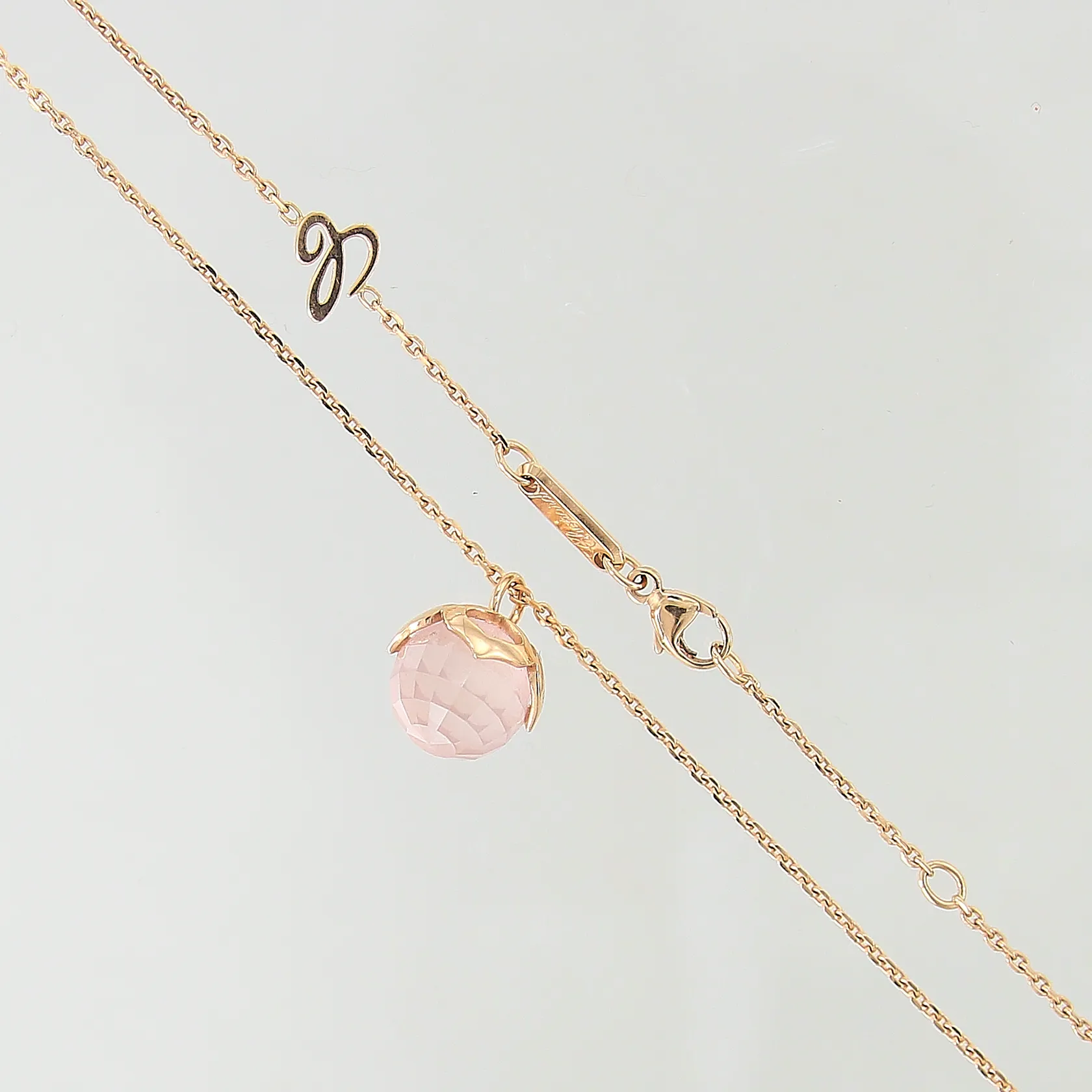Collier Chopard Pendant Imperiale, integrerat hänge med rosenkvarts, ställbar längd 38/40/42cm, bredd 1-15mm, ref-nr: 799207-5001, serie-nr: 3316053, roséguld, certifikat från Rob Engström år 2024, kvitto från Kaplans Auktioner, originaletui, ytterkartong, 18K Vikt: 6,4 g.