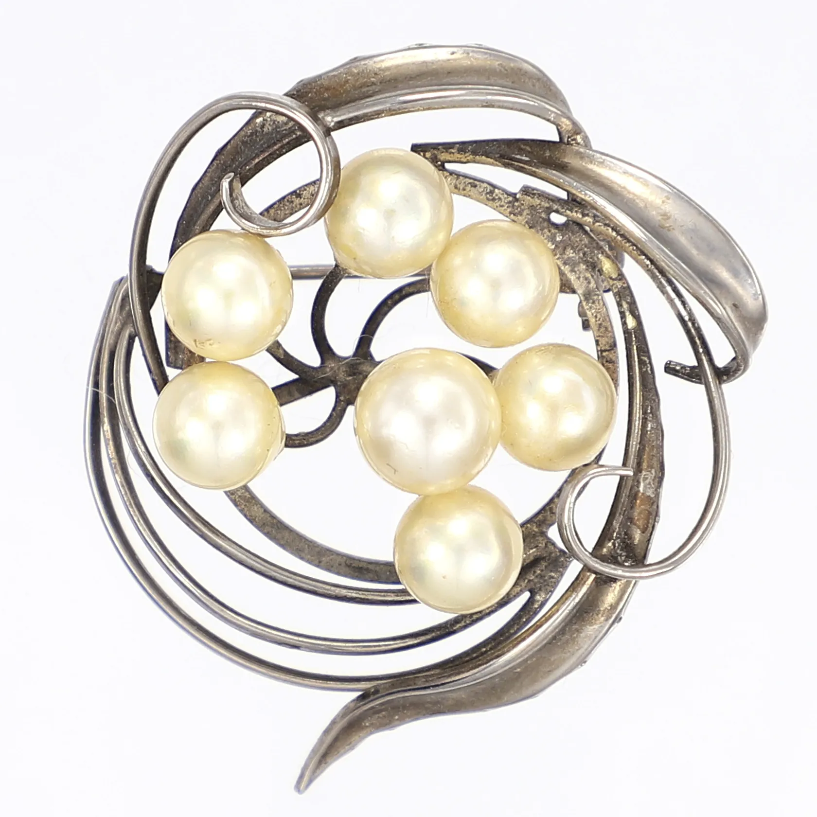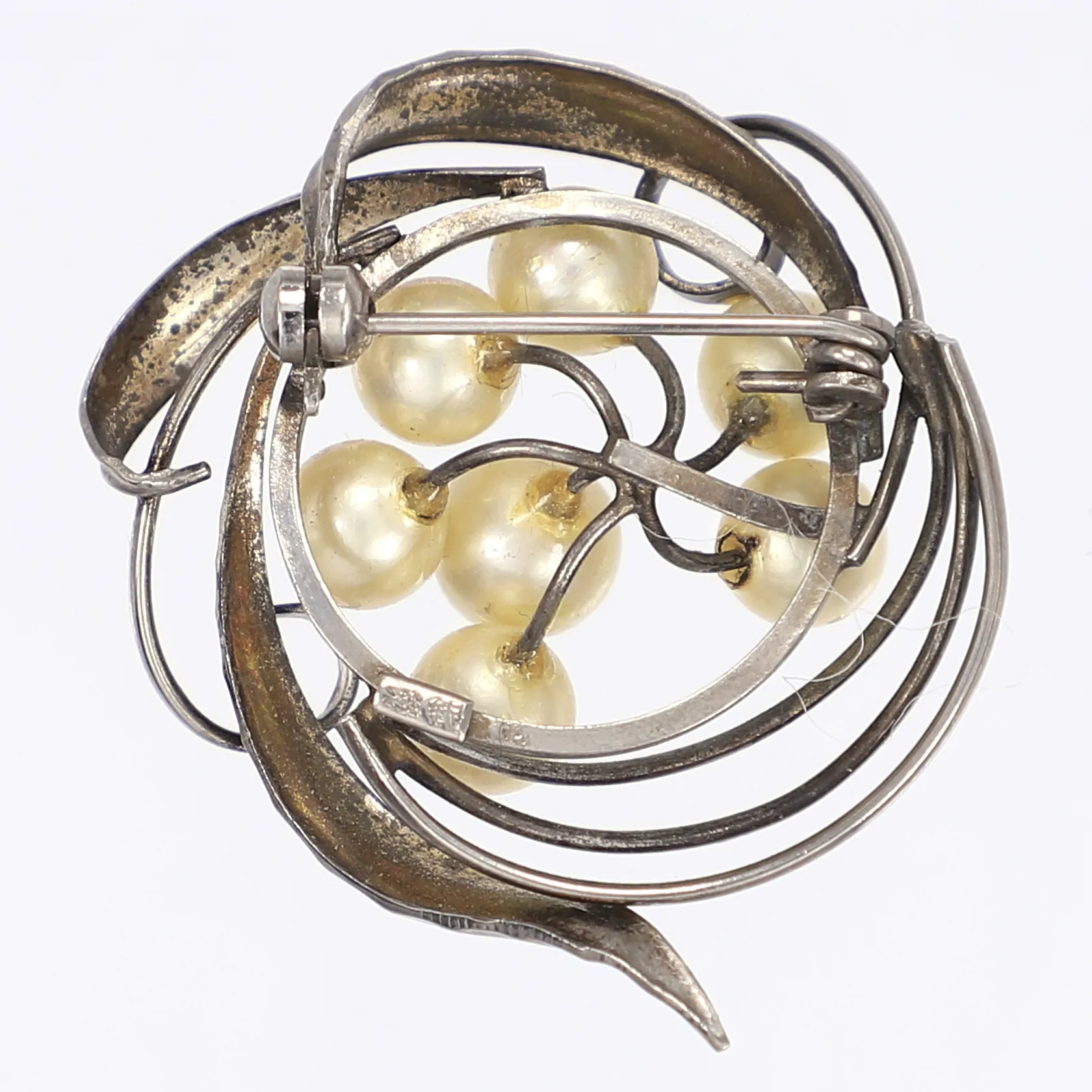 Brosch med imitationspärlor Ø40mm troligen kinesiska stämplar smärre slitage silver 830/1000 Vikt: 9,9 g.