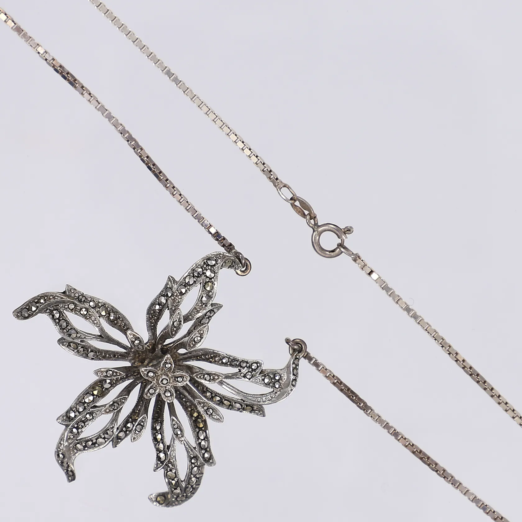 Halskedja Venezia med integrerat hänge i form av blomma hänget med markasiter längd ca 70cm silver 925/1000 Vikt: 21,4 g.