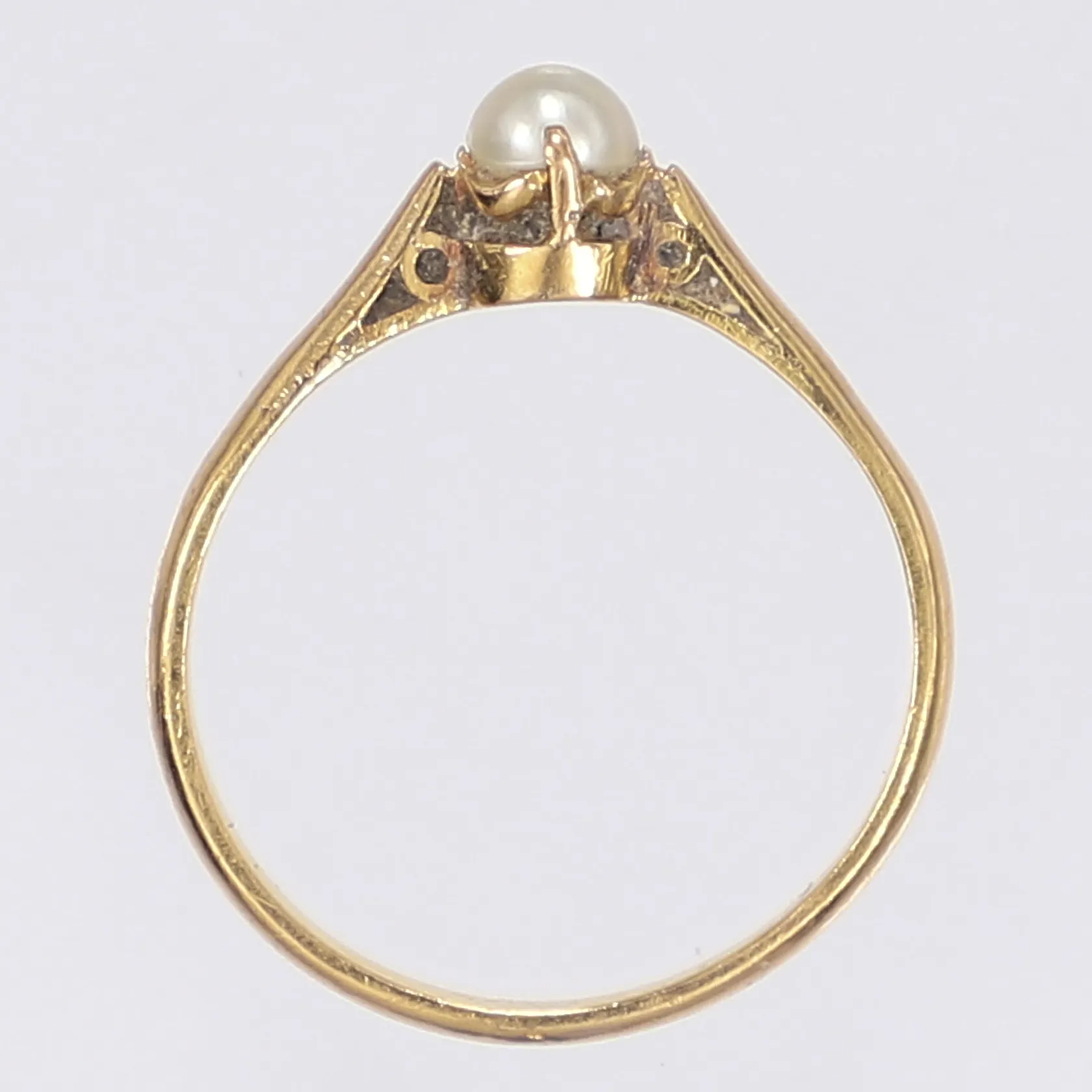 Ring med odlad sötvattenpärla, stl 17¾, bredd 2-5mm, ostämplad, 18K Bruttovikt: 2,2g Vikt: 2,2 g.