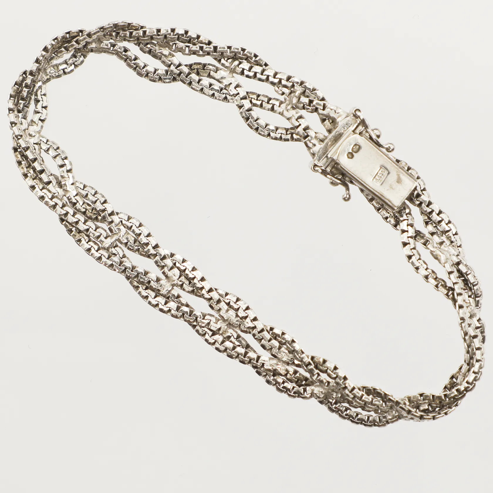 Armband flätat, ca 18,5cm, bredd 8mm, 835/1000 silver Vikt: 10,8 g.