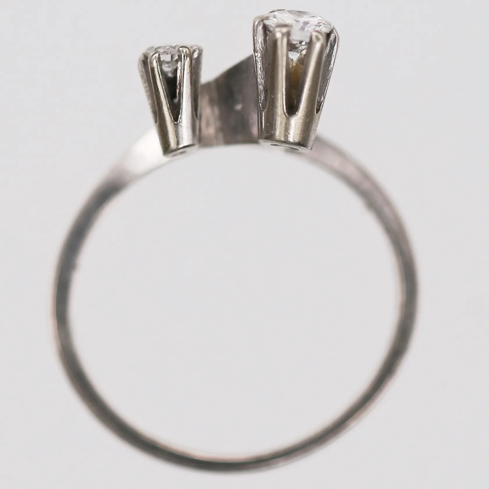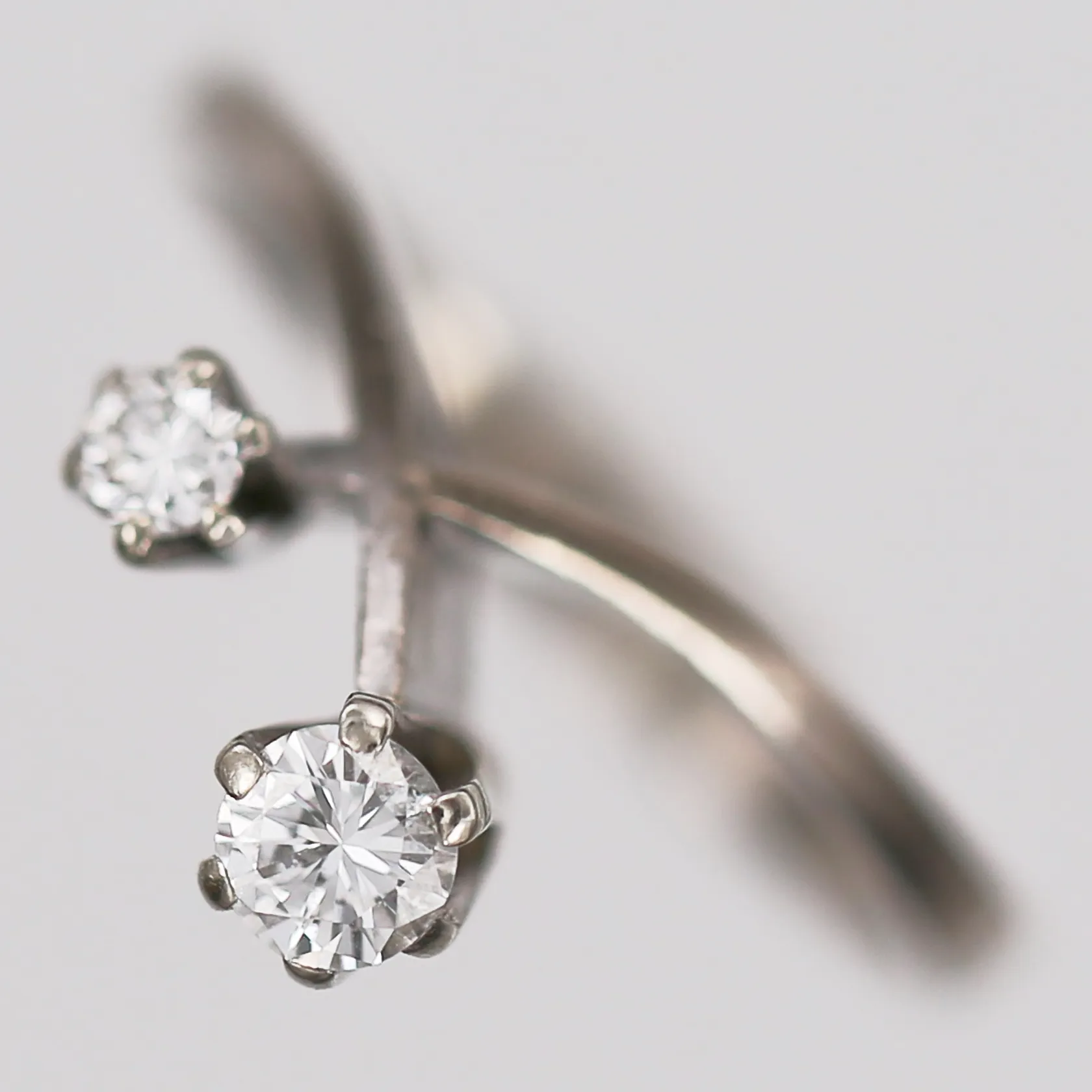 Ring med diamanter 1 x ca 0,16ct, samt 1 x ca 0,06ct, Alton 1969, stl: 15,5, bredd: 2,8-11,3 mm, 18K vitguld. Vikt: 2,4 g.