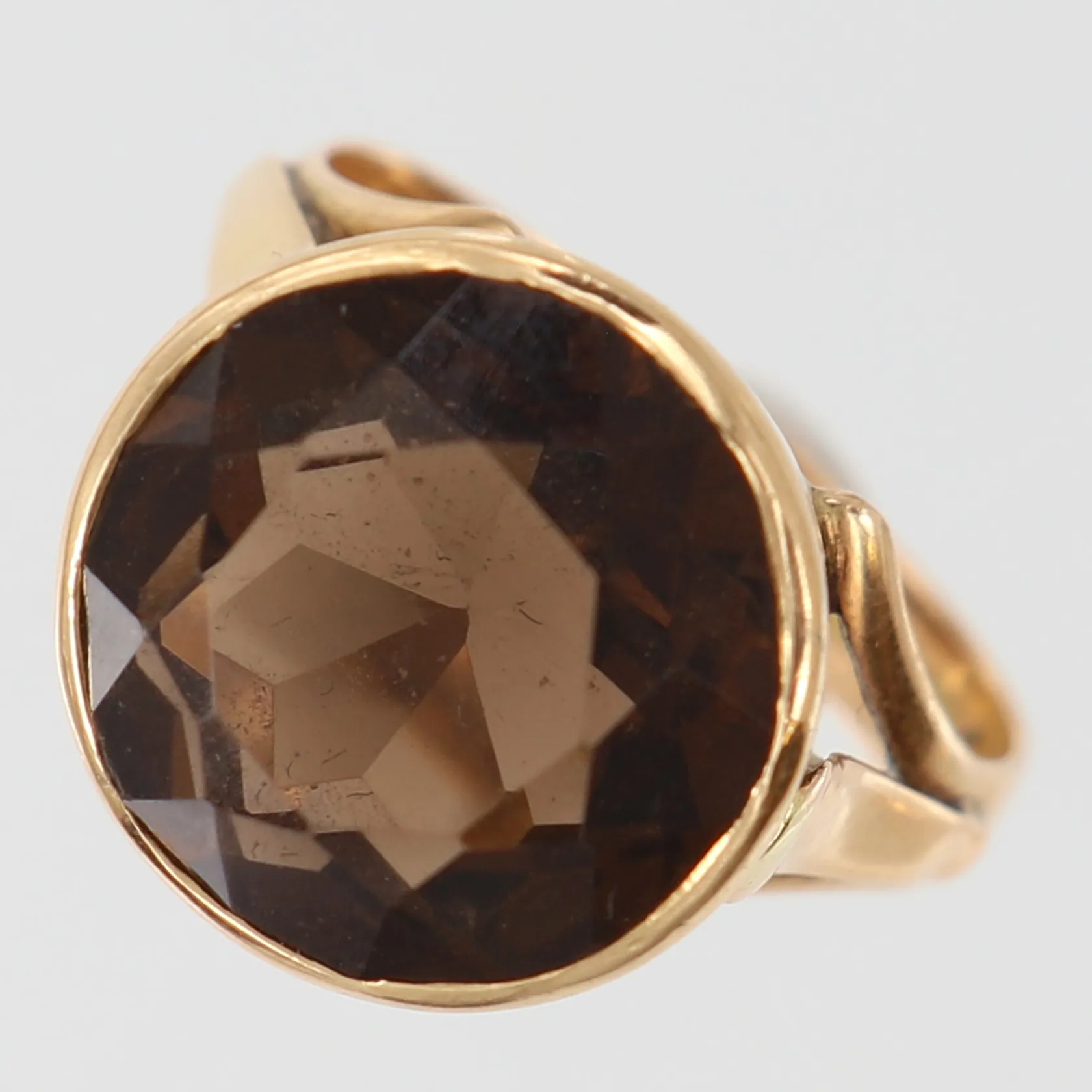 Ring med mörk sten, stl: 17½, bredd 3,2-15mm, 14K. Vikt: 6,5 g.