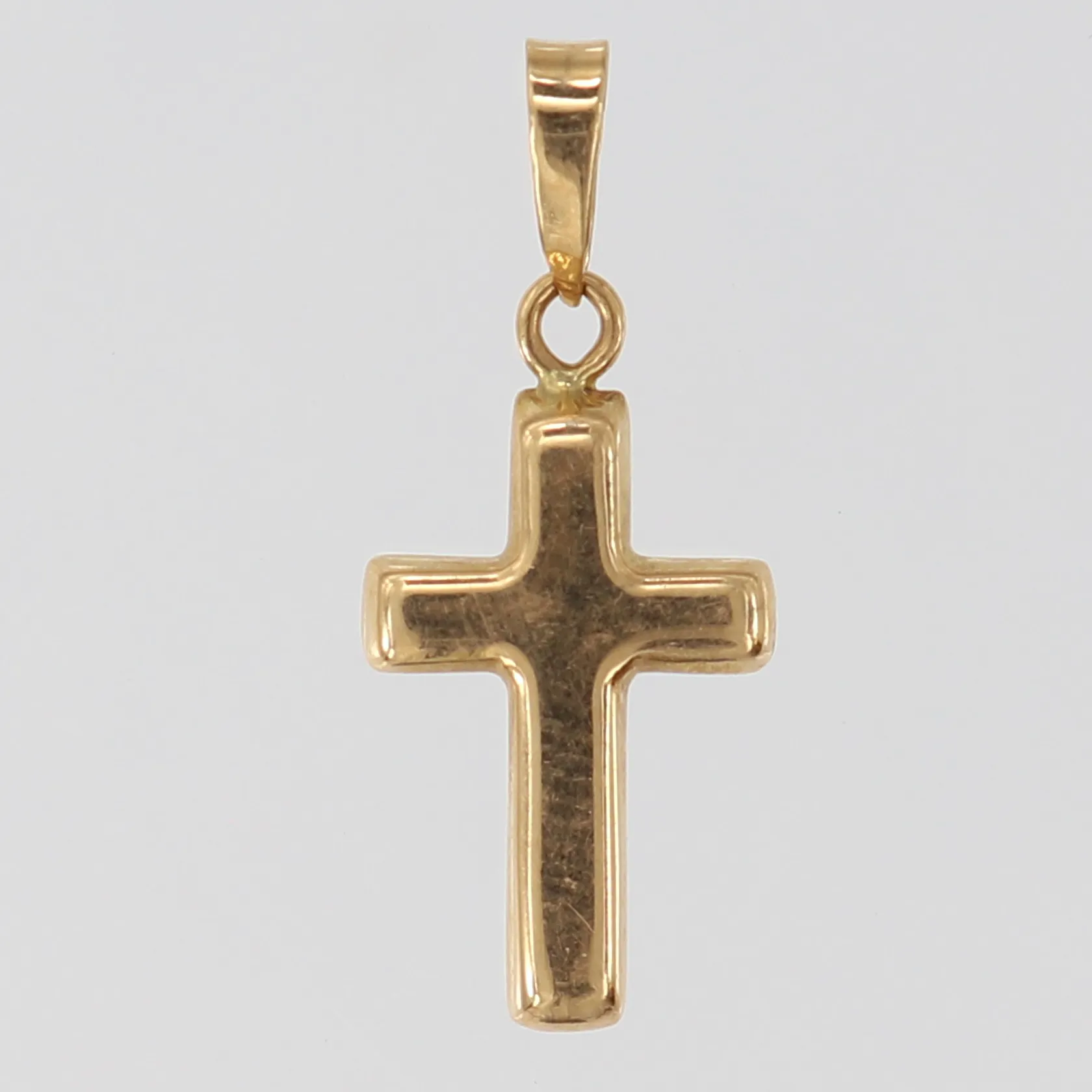 Hänge Kors, 23x10mm ink ögla, GHA, ihålig, 18K. Vikt: 0,8 g.