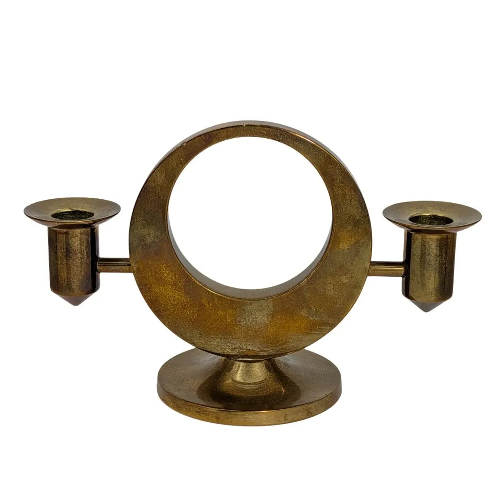 Ljusstake Arthur Pe Kolbäck mässing, 2-armad, höjd 9 cm, bredd 14 cm, minimalt märke i ovankant, för övrigt i fint skick, oputsad patina, vikt omkring 420 g Skickas med paket..