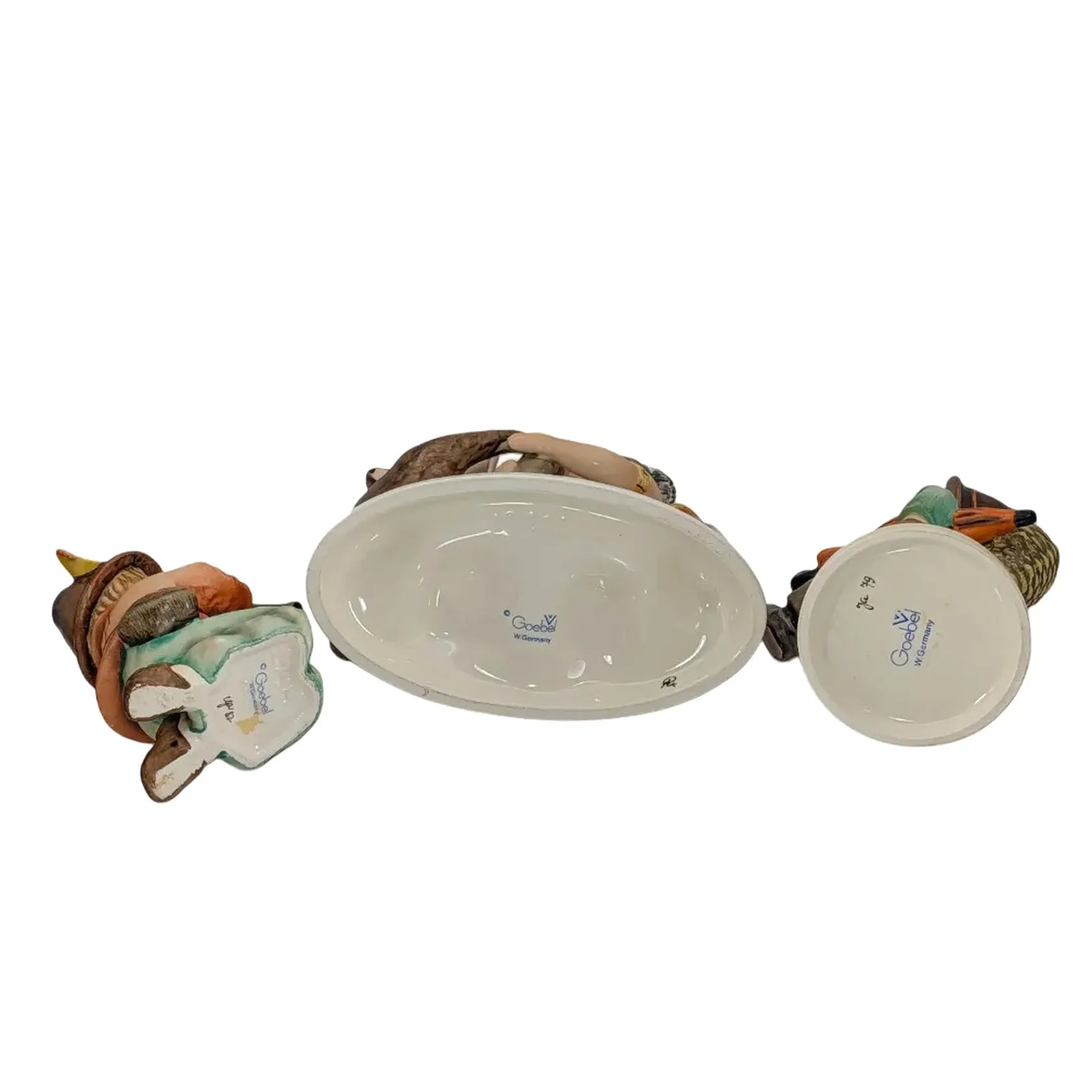 Figuriner Goebel W.Germany, 3 stycken, höjd 14,5 cm och lägre, en figurin med mindre glasyrmiss från tillverkning, för övrigt skick utan anmärkning, vikt omkring 500 gram