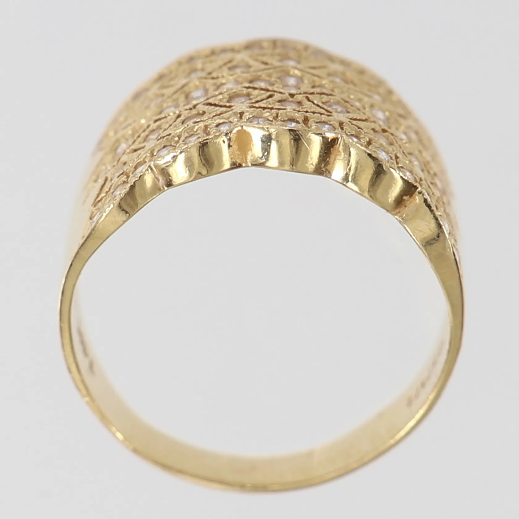 Ring med vita stenar, stl: 18, bredd 4-15mm, 14K. Vikt: 4,2 g.