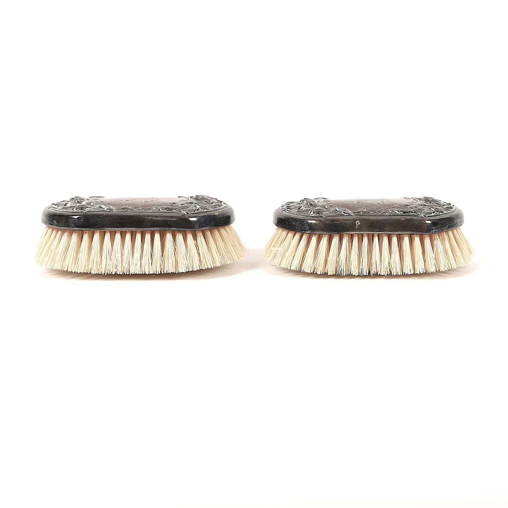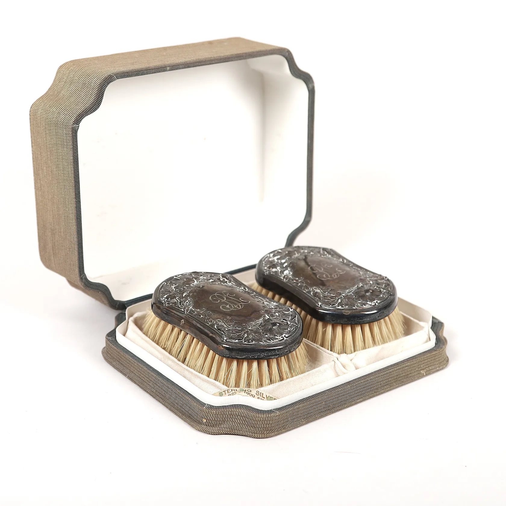 2 Borstar med monogramgravyr, 130x90mm, etui, silver, bruttovikt 284,4g Vikt: 284,4 g.