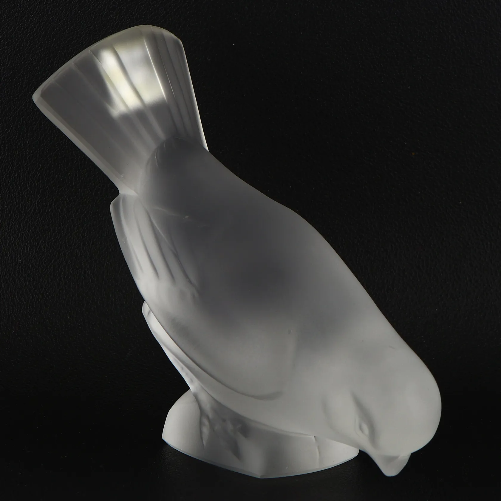 Figurin i frostat glas av Lalique, fågel, höjd ca 12cm, signerad samt etikettmärkt