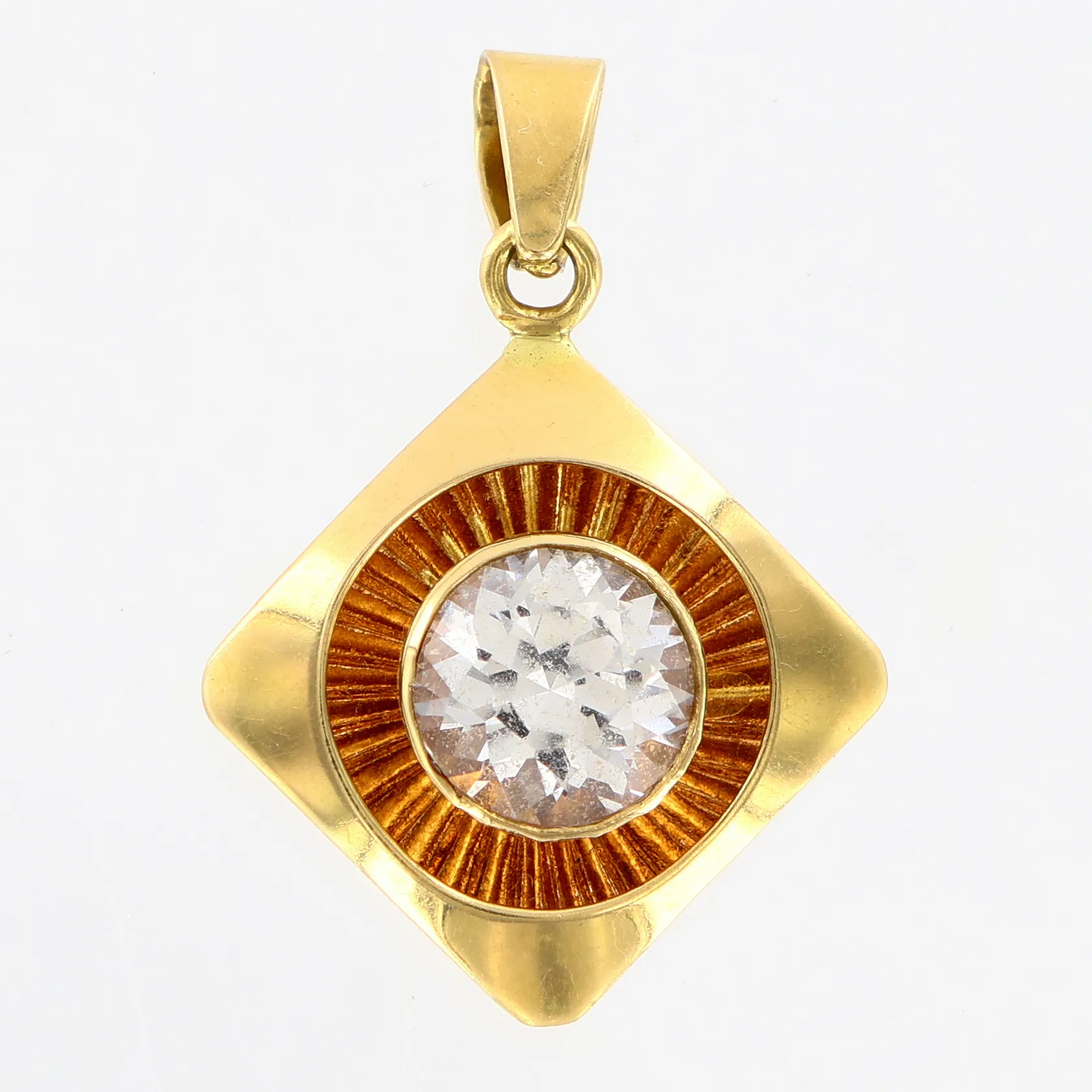 Hänge med vit sten, ca 27mm, 18K Vikt: 2,6 g.