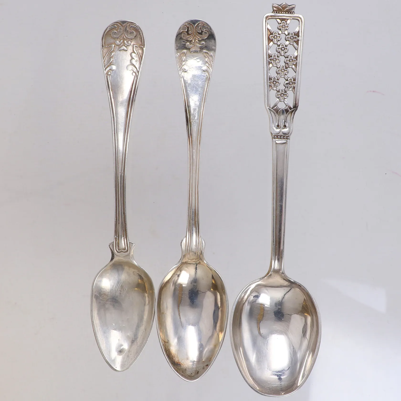 3 skedar, olika modeller, längd 14-15,5cm, 830/1000 silver Vikt: 56 g.