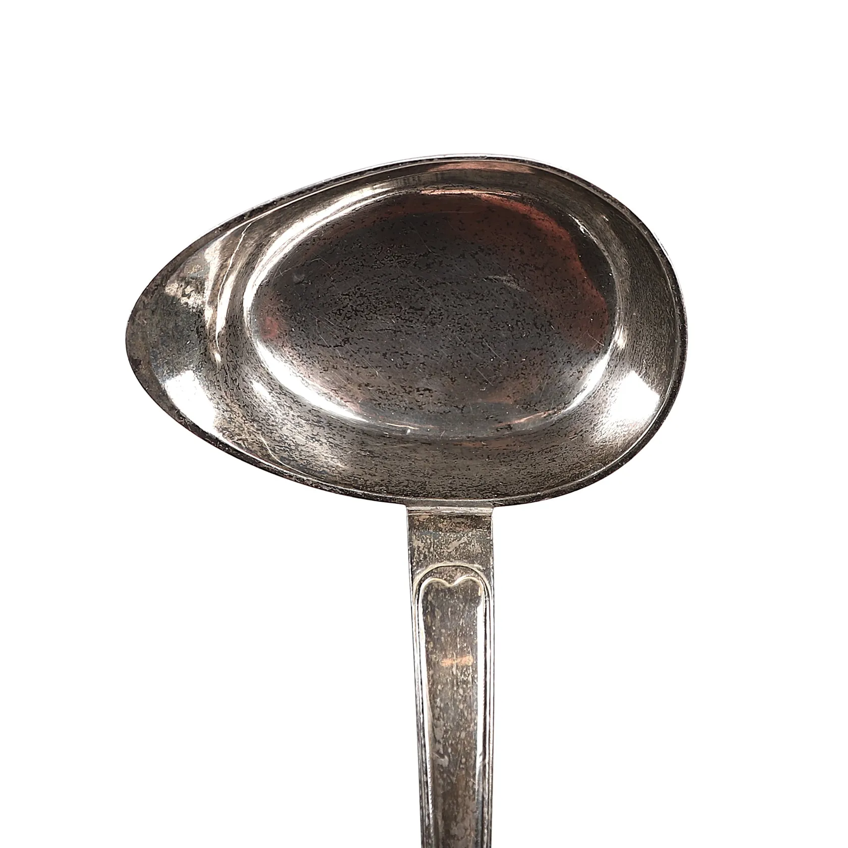 Soppslev, modell Svensk Rund, Johan Wilhelm Zimmerman år 1790, längd: 38,5cm, silver. Vikt: 255,4 g.