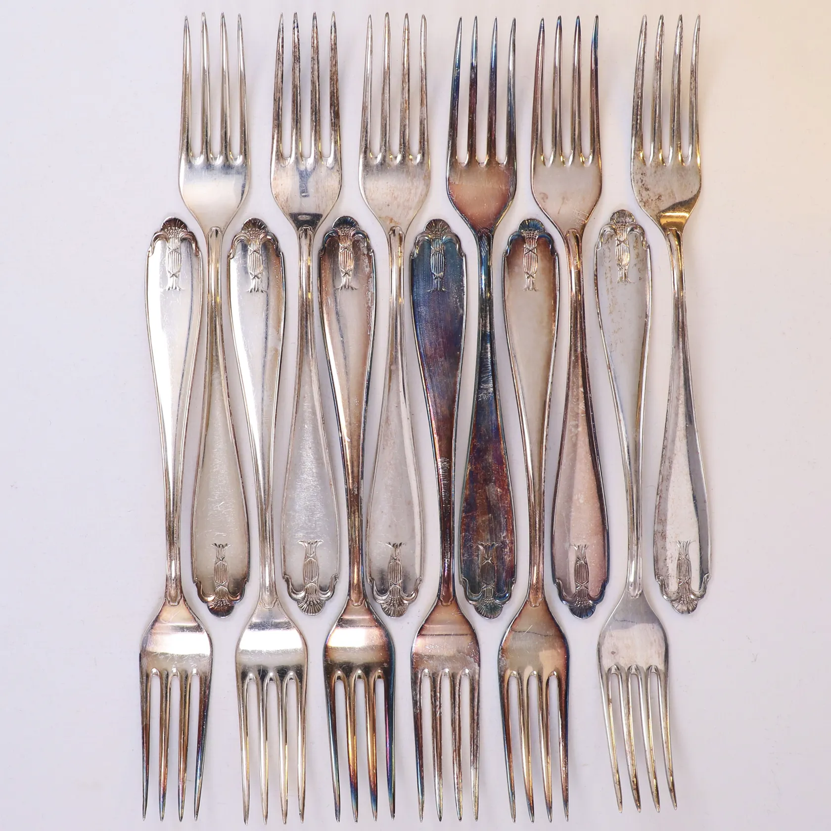 12 Gafflar modell Vasa, längd 18cm, GAB 1950-tal, 830/1000 silver Vikt: 412 g.